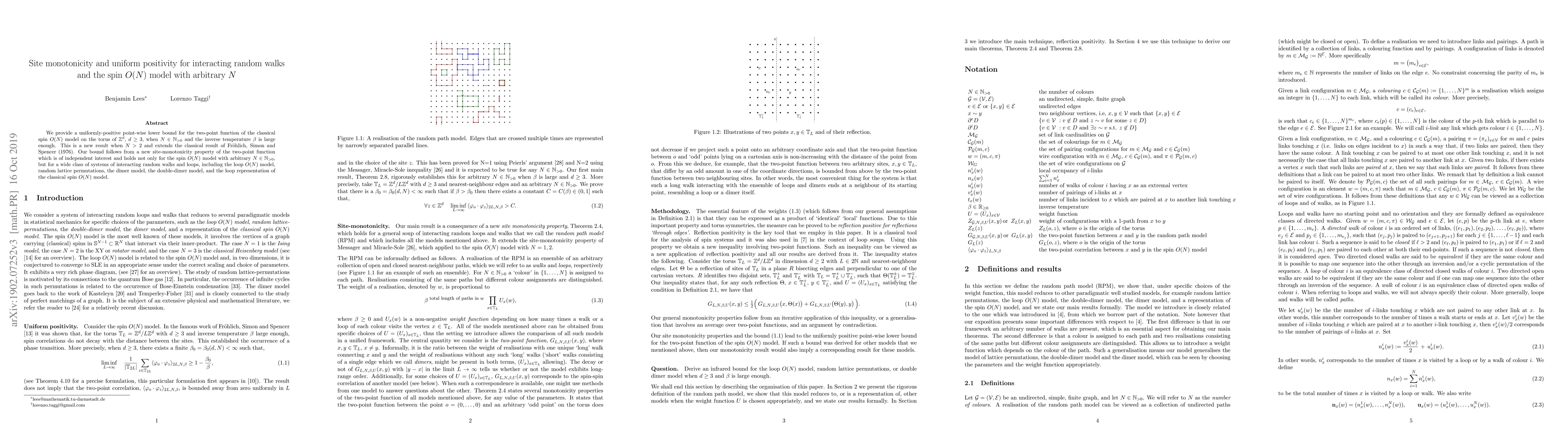 Researchers have established a new lower bound for the two-point function of the spin O(N) model on a torus, showing that it is uniformly positive when temperature is high enough, with implications for other systems of interacting random walks.