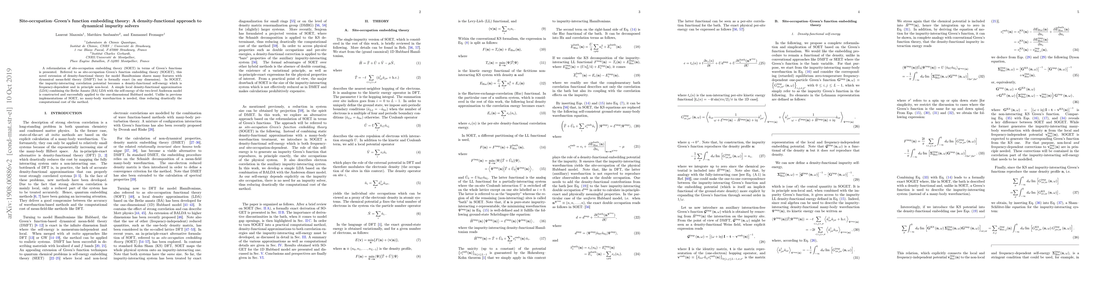 This paper introduces site-occupation--Green's function embedding theory (SOGET), a new density-functional approach to dynamical impurity solvers that reformulates site-occupation embedding theory (SOET). SOGET is formally exact and avoids the need for many-body wavefunctions, significantly reducing computational costs.