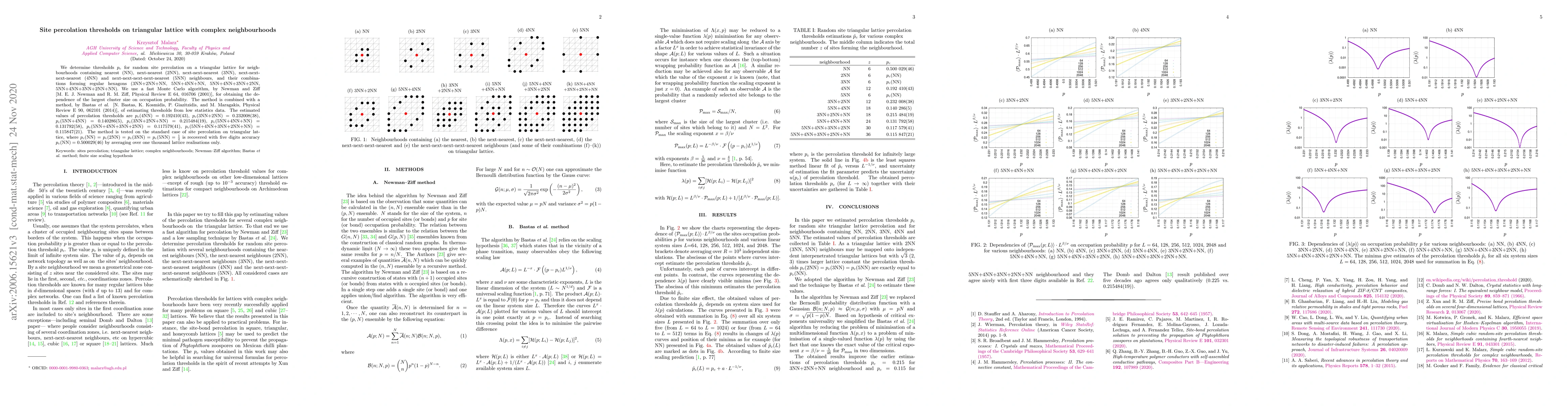 This paper determines percolation thresholds for random site percolation on a triangular lattice with various neighborhood configurations, using a combination of Monte Carlo and statistical methods. The estimated thresholds for different neighborhood combinations are reported, with the standard case of nearest-neighbor percolation also verified.
