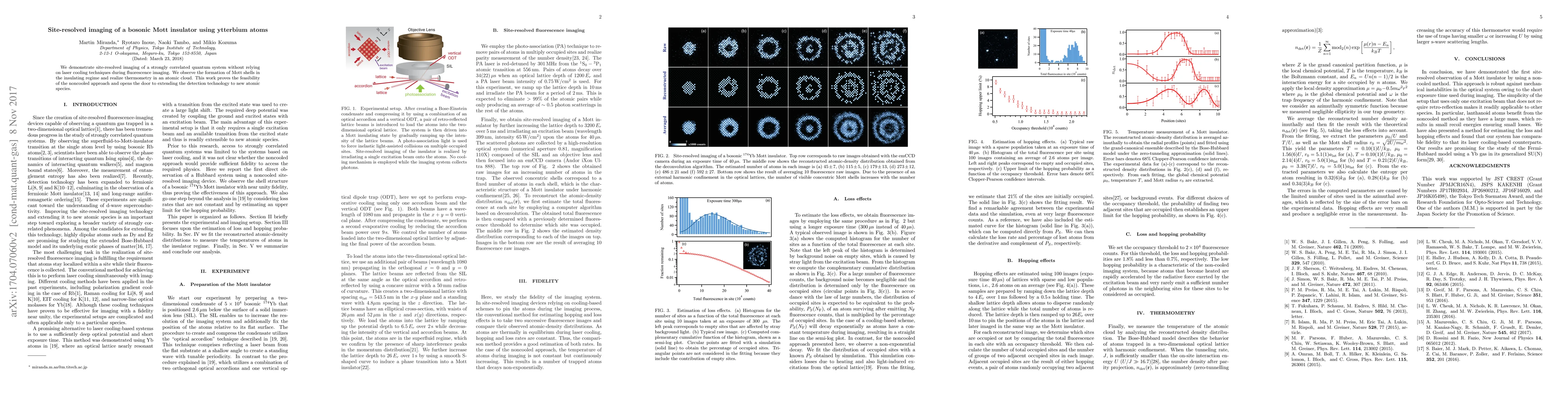 This paper presents site-resolved imaging of a bosonic Mott insulator using ytterbium atoms without laser cooling, revealing the formation of Mott shells and enabling atomic-level thermometry, demonstrating a noncooled detection method applicable to new atomic species.