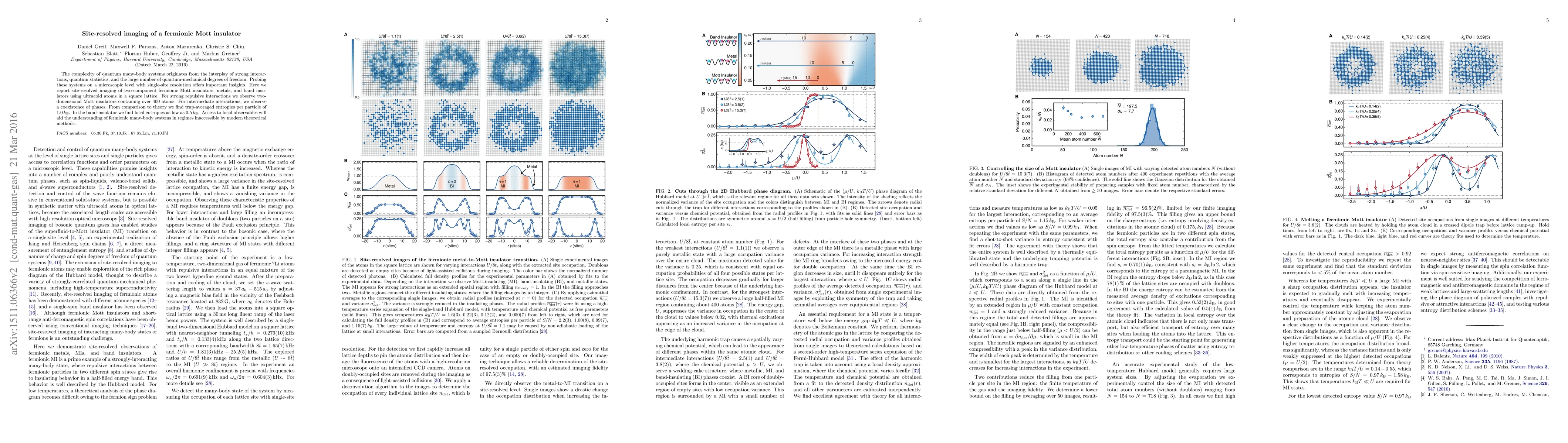 This paper reports site-resolved imaging of two-component fermionic Mott insulators using ultracold atoms, revealing insights into phase coexistence under different interactions. The study finds trap-averaged entropies per particle and local entropies as low as $0.5\,k_{\mathrm{B}}$, aiding the understanding of complex quantum many-body systems.