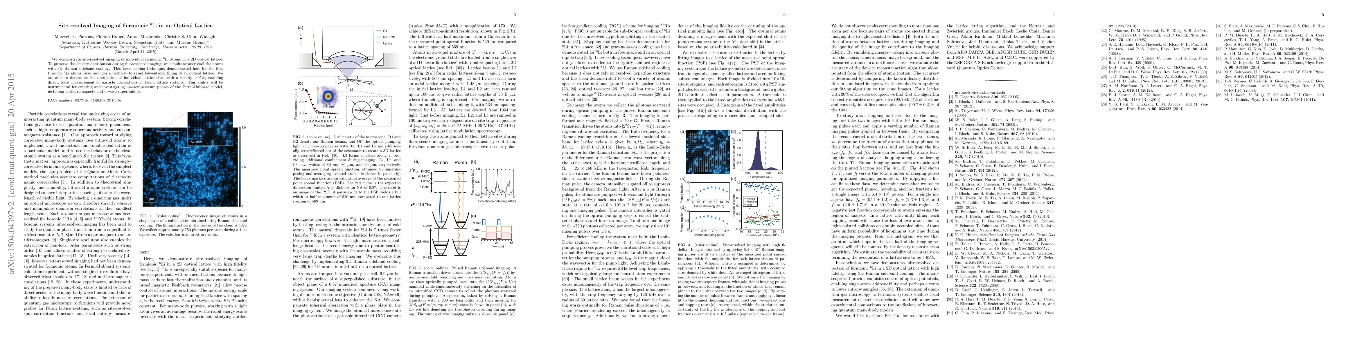 This paper presents site-resolved imaging of individual fermionic lithium-6 atoms in a 2D optical lattice using 3D Raman sideband cooling, achieving >95% fidelity. This method enables direct local measurement of particle correlations, crucial for studying low-temperature phases of the Fermi-Hubbard model.