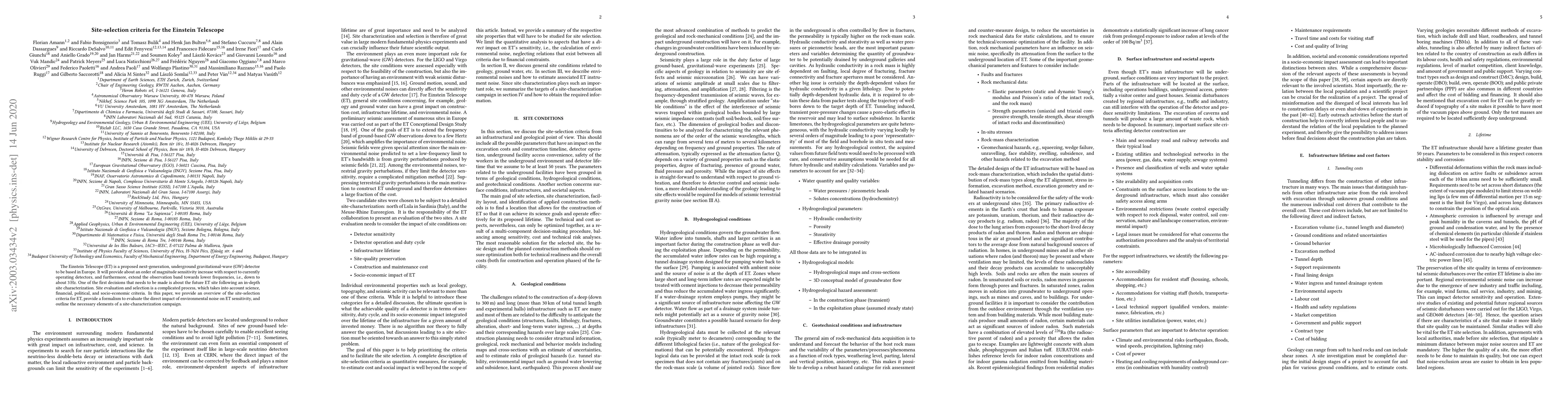 This paper outlines the site-selection criteria for the proposed Einstein Telescope, emphasizing the complex evaluation process involving science, financial, political, and socio-economic factors. It also introduces a formalism to assess environmental noise impacts and details the essential components of a site-characterization campaign.