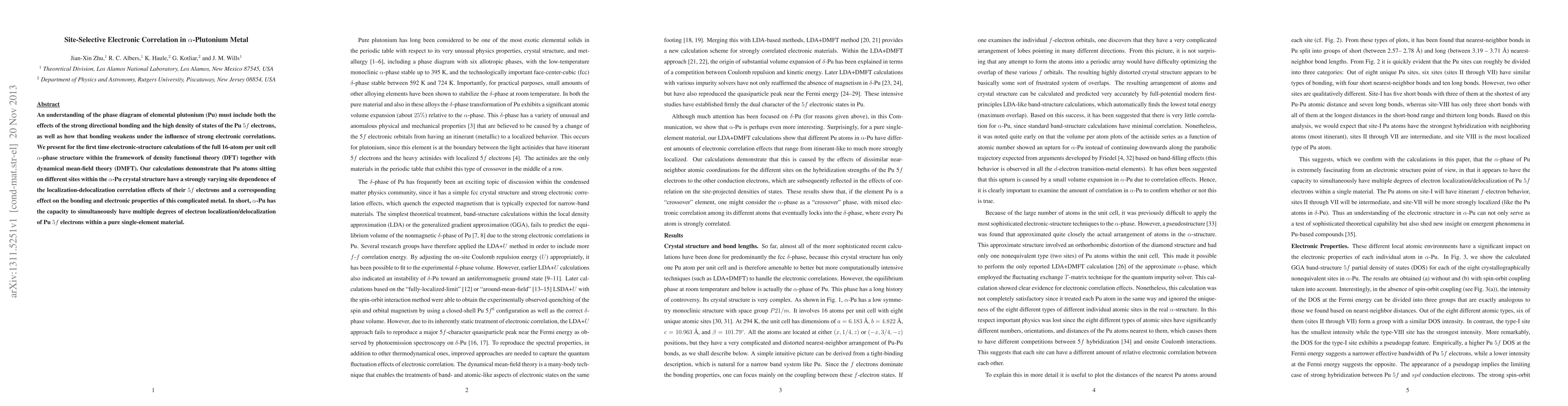 This paper explores the electronic structure of alpha-plutonium using DFT and DMFT, revealing significant site-selective variations in the localization-delocalization of Pu 5f electrons, which impacts bonding and electronic properties in this complex metal. Alpha-plutonium exhibits multiple degrees of electron localization/delocalization within its single-element structure.