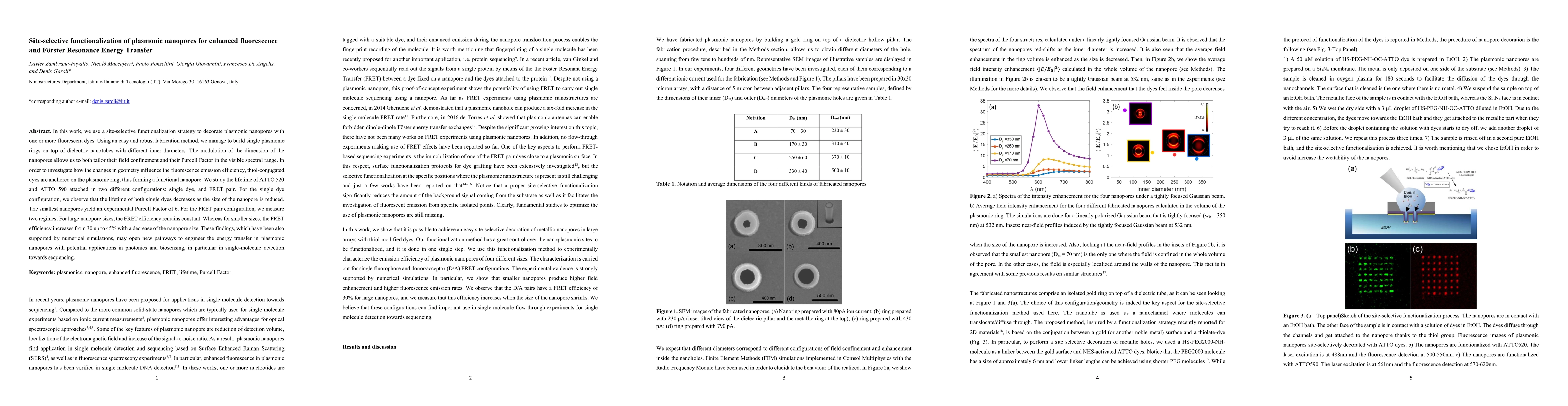 Researchers developed a method to decorate plasmonic nanopores with fluorescent dyes, improving fluorescence efficiency and F"orster Resonance Energy Transfer with varying nanopore sizes.