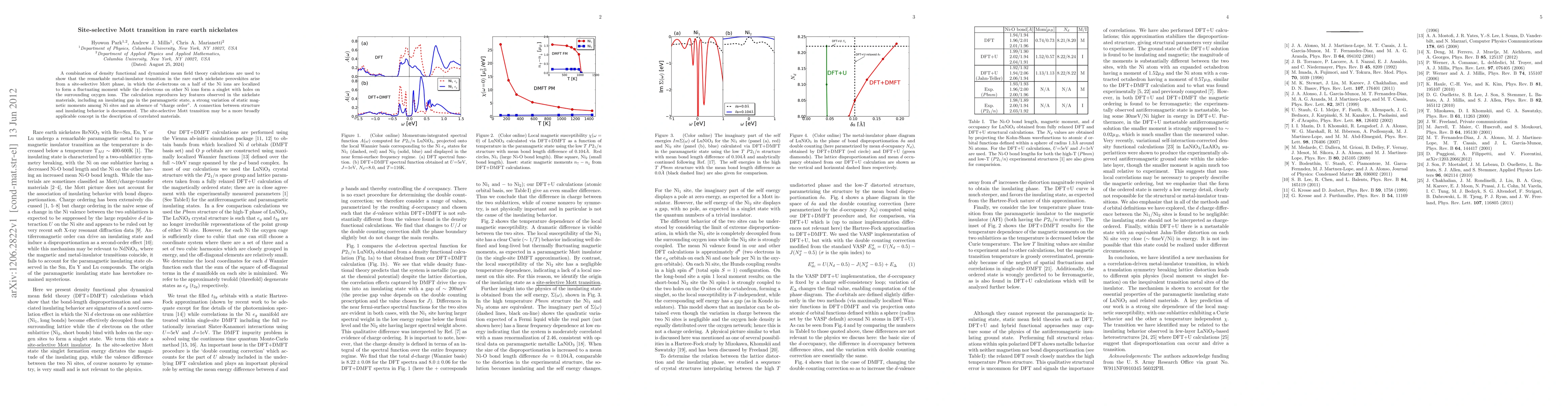 This paper demonstrates that the metal-insulator transition in rare earth nickelates is due to a site-selective Mott phase, where half of the Ni ions' $d$-electrons localize, forming a fluctuating moment while the other Ni ions' $d$-electrons form singlets with oxygen holes. This model explains observed insulating behavior and magnetic moment variations.