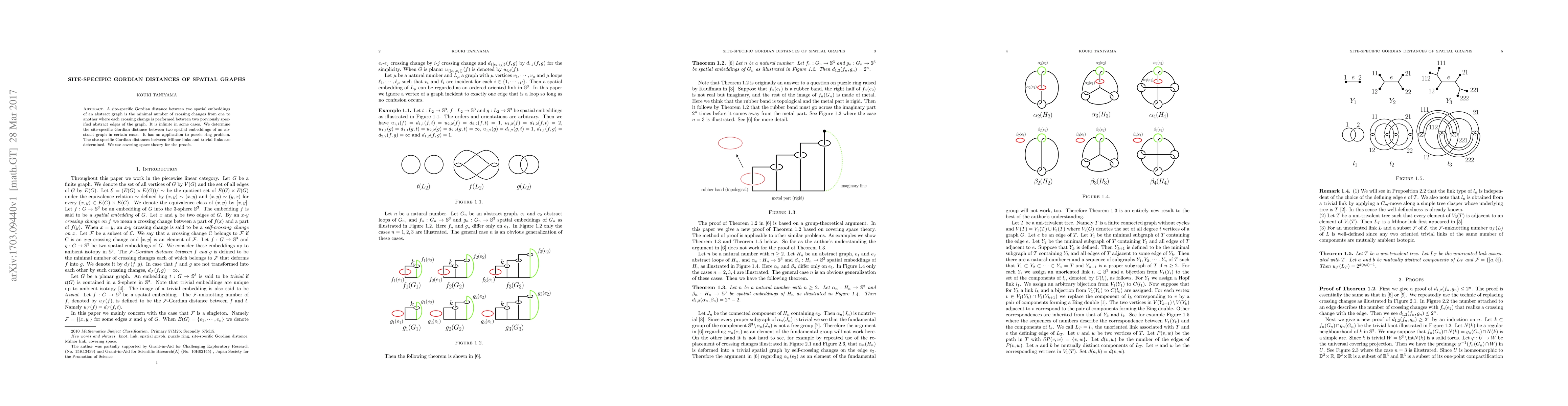 A site-specific Gordian distance between two spatial embeddings of an abstract graph is the minimal number of crossing changes from one to another where each crossing change is performed between two previously specified abstract edges of the graph. It is infinite in some cases. We determine the site-specific Gordian distance between two spatial embeddings of an abstract graph in certain cases. It has an application to puzzle ring problem. The site-specific Gordian distances between Milnor links and trivial links are determined. We use covering space theory for the proofs.