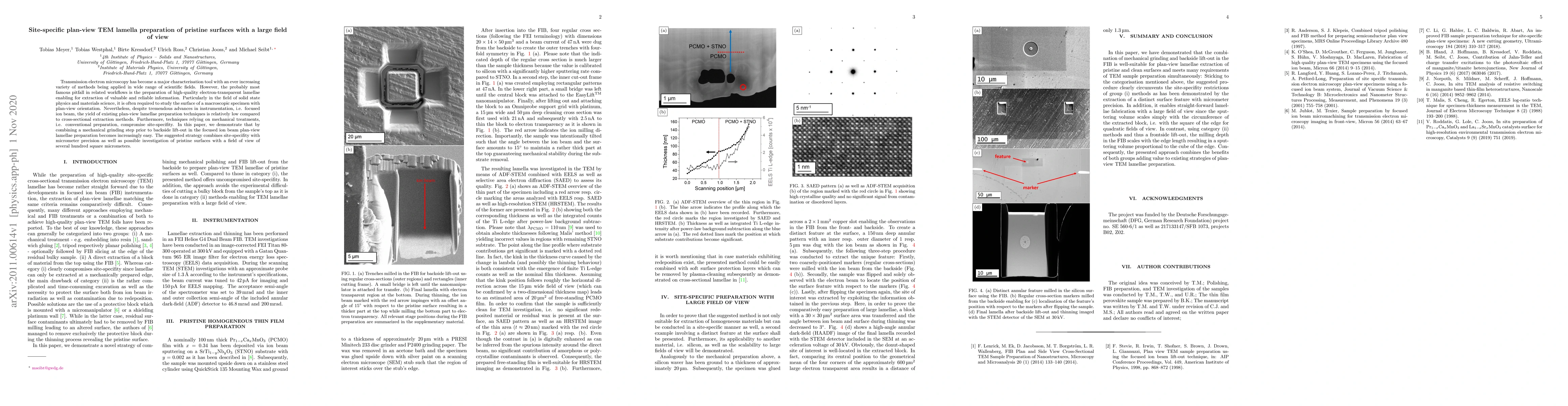 Researchers developed a method to prepare high-quality plan-view lamellae for transmission electron microscopy, enabling the study of pristine surfaces with a large field of view. The technique combines mechanical grinding and focused ion beam preparation, increasing site-specificity and precision.