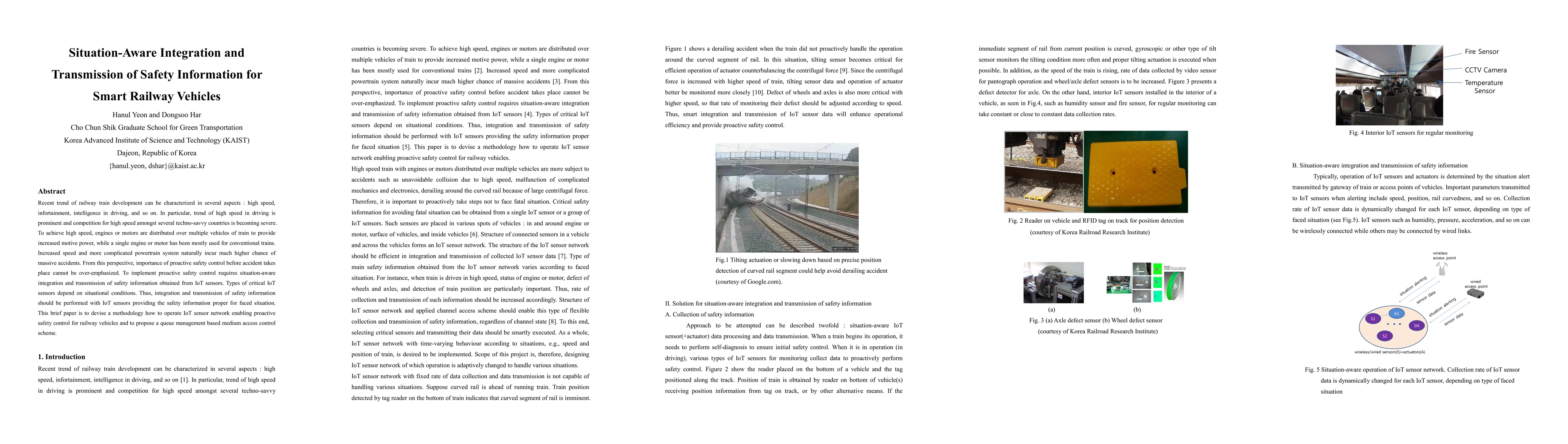 Recent trend of railway train development can be characterized in several aspects : high speed, infortainment, intelligence in driving, and so on. In particular, trend of high speed in driving is prominent and competition for high speed amongst several techno-savvy countries is becoming severe. To achieve high speed, engines or motors are distributed over multiple vehicles of train to provide increased motive power, while a single engine or motor has been mostly used for conventional trains. Increased speed and more complicated powertrain system naturally incur much higher chance of massive accidents. From this perspective, importance of proactive safety control before accident takes place cannot be over-emphasized. To implement proactive safety control requires situation-aware integration and transmission of safety information obtained from IoT sensors. Types of critical IoT sensors depend on situational conditions. Thus, integration and transmission of safety information should be performed with IoT sensors providing the safety information proper for faced situation. This brief paper is to devise a methodology how to operate IoT sensor network enabling proactive safety control for railway vehicles and to propose a queue management based medium access control scheme.