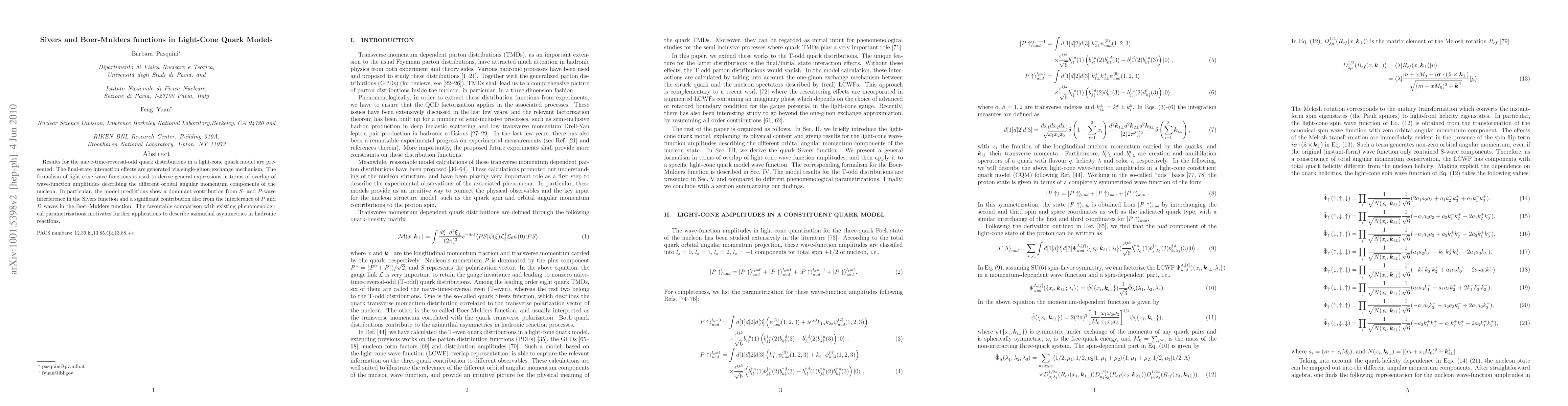 This paper presents results for Sivers and Boer-Mulders functions in a light-cone quark model, showing dominant S- and P-wave interference contributions for the Sivers function and significant P and D wave interference for the Boer-Mulders function. The model's predictions align well with existing parametrizations, suggesting its utility for describing azimuthal asymmetries in hadronic reactions.