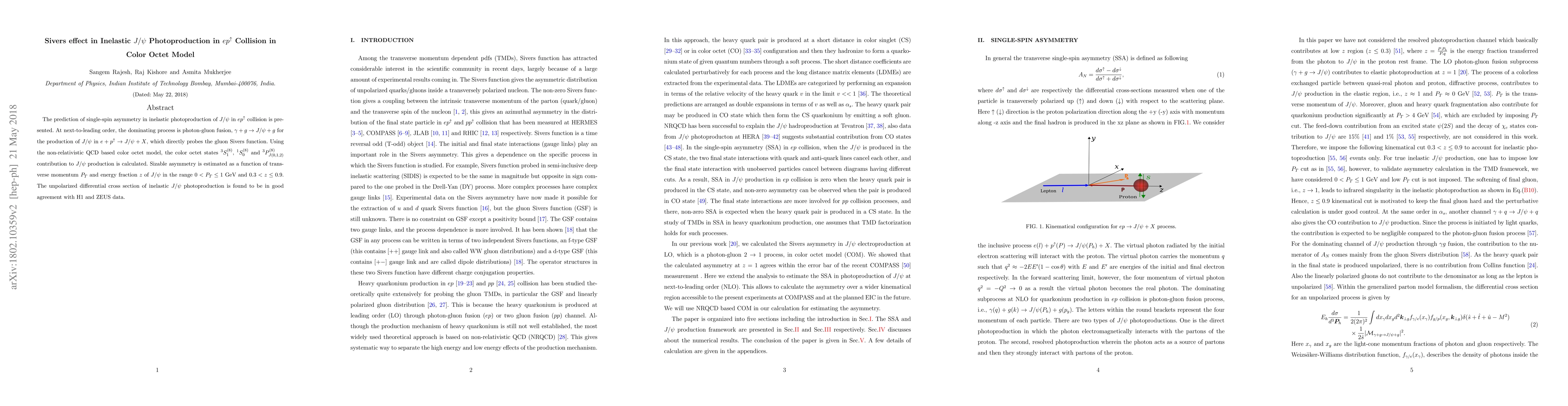 $J/\psi$ in $ep^\uparrow$ collision is presented. At next-to-leading order, the