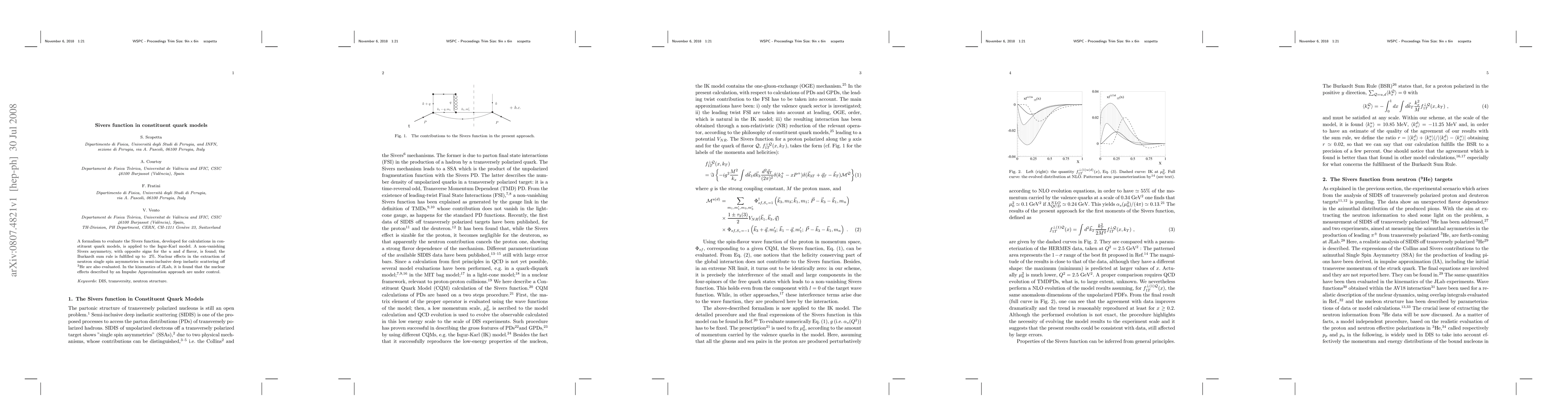 This paper develops a formalism to calculate the Sivers function in constituent quark models, applying it to the Isgur-Karl model and finding a non-vanishing asymmetry with opposite signs for u and d quarks. It also assesses nuclear effects in neutron single spin asymmetries in semi-inclusive deep inelastic scattering, concluding that nuclear effects in JLab kinematics are manageable.