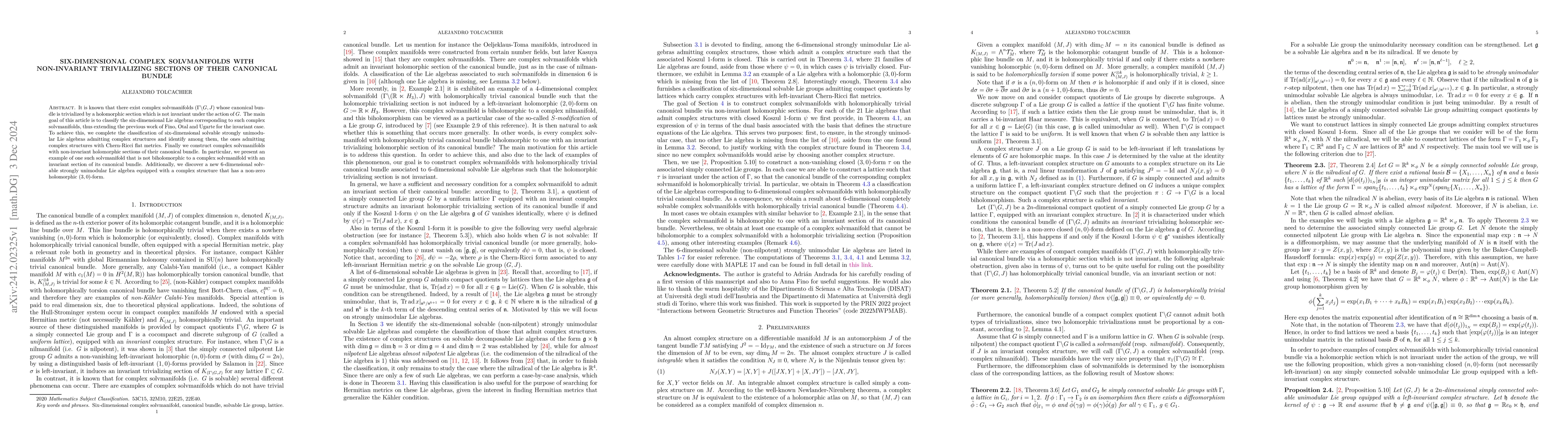 This paper classifies six-dimensional complex solvmanifolds with non-invariant trivializing sections of their canonical bundle by extending the classification of six-dimensional solvable strongly unimodular Lie algebras with complex structures, and presents an example of such a solvmanifold.