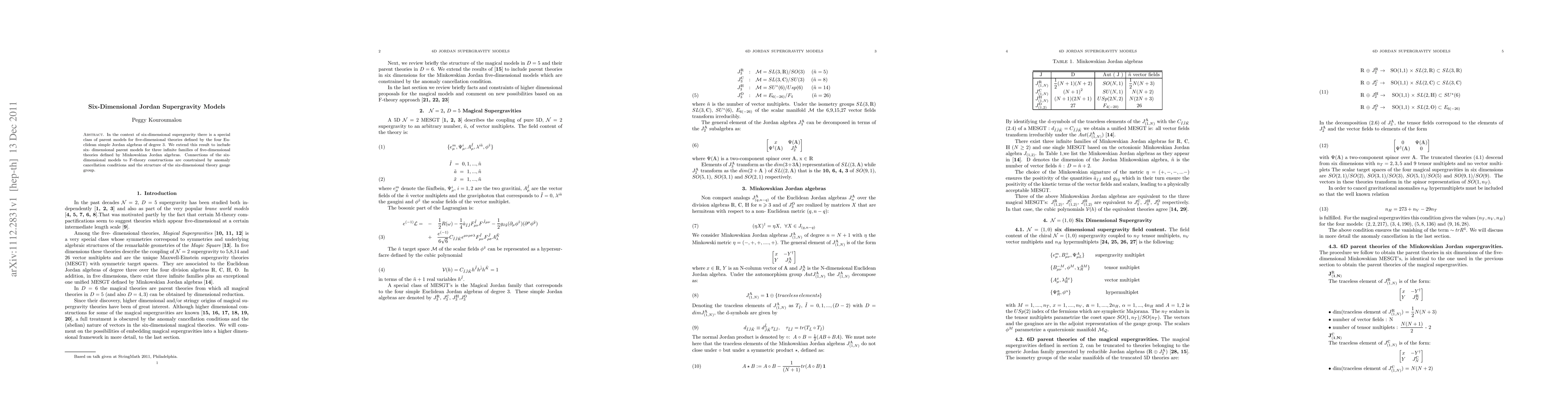 In the context of six-dimensional supergravity there is a special class of parent models for five-dimensional theories defined by the four Euclidean simple Jordan algebras of degree 3. We extend this result to include six- dimensional parent models for three infinite families of five-dimensional theories defined by Minkowskian Jordan algebras. Connections of the six-dimensional models to F-theory constructions are constrained by anomaly cancellation conditions and the structure of the six-dimensional theory gauge group.