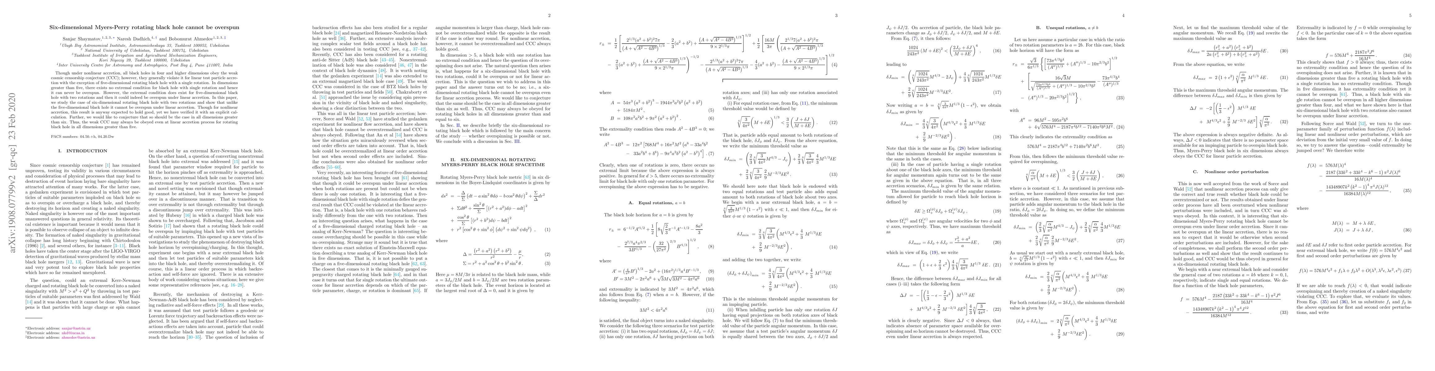 This paper demonstrates that six-dimensional Myers-Perry rotating black holes cannot be overspun under linear accretion, contrasting with the five-dimensional case. It verifies the weak cosmic censorship conjecture holds even under linear accretion for dimensions greater than five.