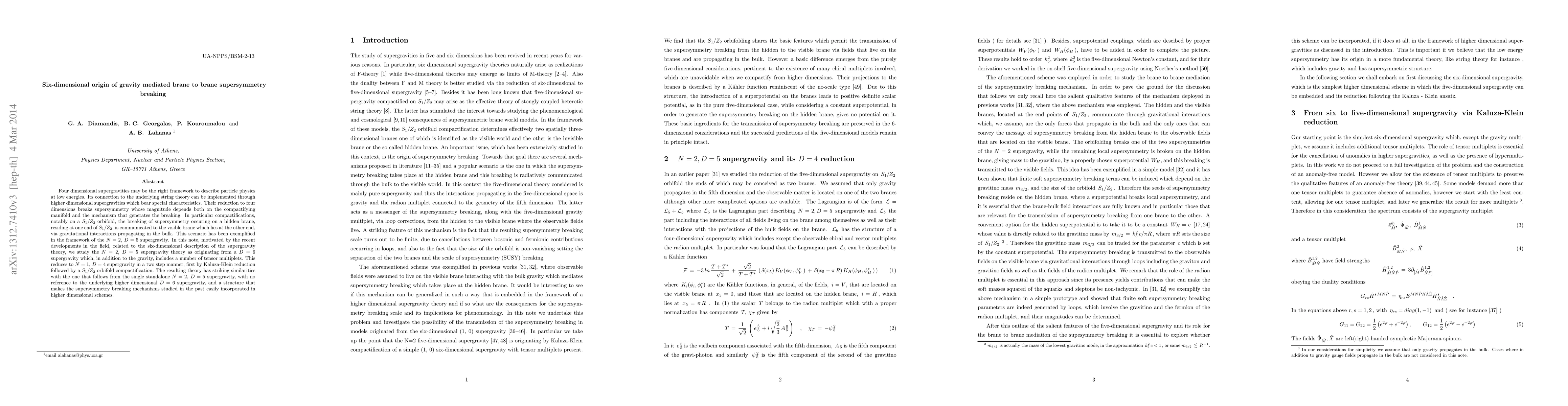 Four dimensional supergravities may be the right framework to describe particle physics at low energies. Its connection to the underlying string theory can be implemented through higher dimensional supergravities which bear special characteristics. Their reduction to four dimensions breaks supersymmetry whose magnitude depends both on the compactifying manifold and the mechanism that generates the breaking. In particular compactifications, notably on a $S_1/Z_2$ orbifold, the breaking of supersymmetry occuring on a hidden brane, residing at one end of $S_1/Z_2$, is communicated to the visible brane which lies at the other end, via gravitational interactions propagating in the bulk. This scenario has been exemplified in the framework of the $N=2$, $D=5$ supergravity. In this note, motivated by the recent developments in the field, related to the six-dimensional description of the supergravity theory, we study the $N=2$, $D=5$ supergravity theory as originating from a $D=6$ supergravity which, in addition to the gravity, includes a number of tensor multiplets. This reduces to $N=1$, $D=4$ supergravity in a two step manner, first by Kaluza-Klein reduction followed by a $S_1/Z_2$ orbifold compactification. The resulting theory has striking similarities with the one that follows from the single standalone $N=2$, $D=5$ supergravity, with no reference to the underlying higher dimensional $D=6$ supergravity, and a structure that makes the supersymmetry breaking mechanisms studied in the past easily incorporated in higher dimensional schemes.