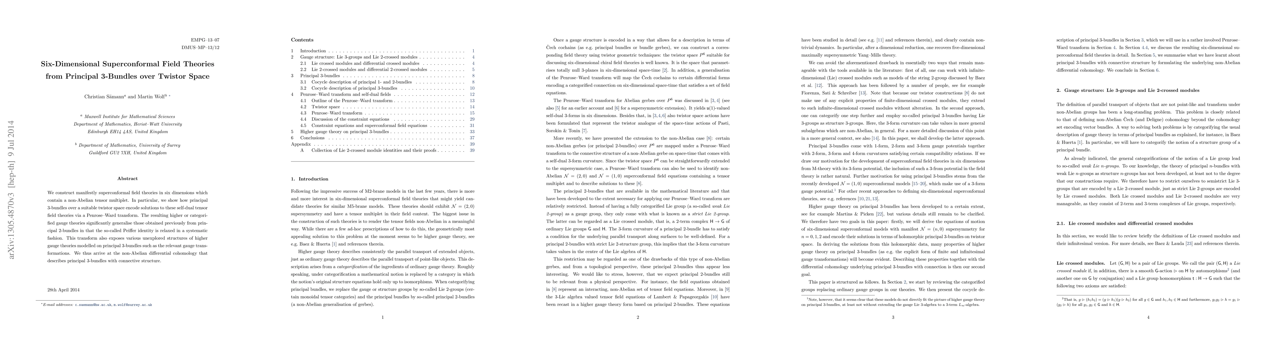 This paper constructs six-dimensional superconformal field theories featuring non-Abelian tensor multiplets, utilizing principal 3-bundles over twistor space. It introduces a Penrose-Ward transform to reveal higher gauge theories based on these bundles, generalizing previous results from principal 2-bundles and uncovering new structures and gauge transformations.