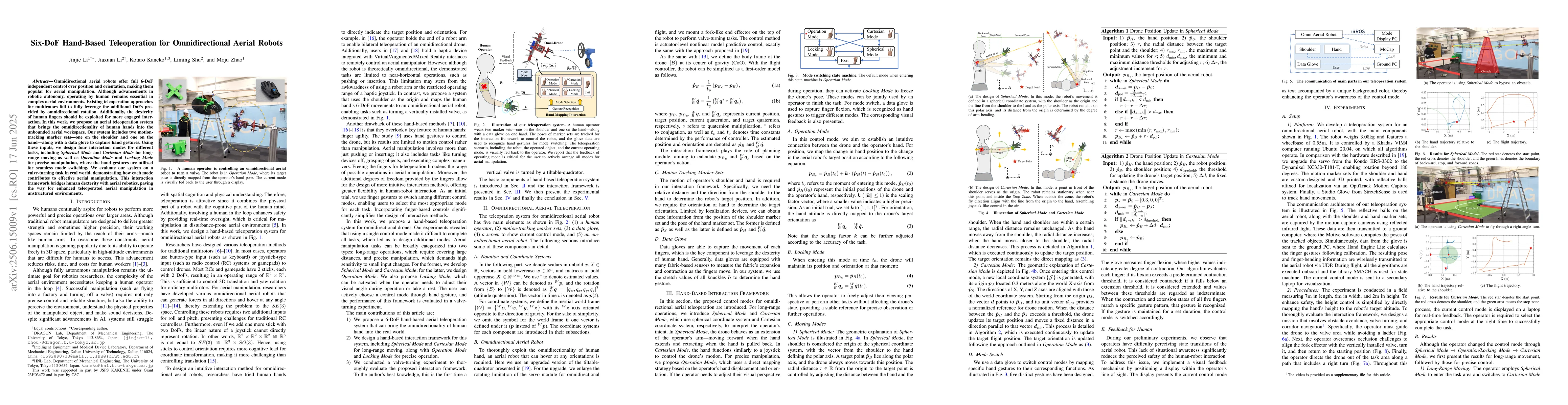 The paper presents an innovative hand-based teleoperation system for omnidirectional aerial robots, incorporating four distinct interaction modes for various tasks, and demonstrating their effectiveness in a valve-turning experiment.