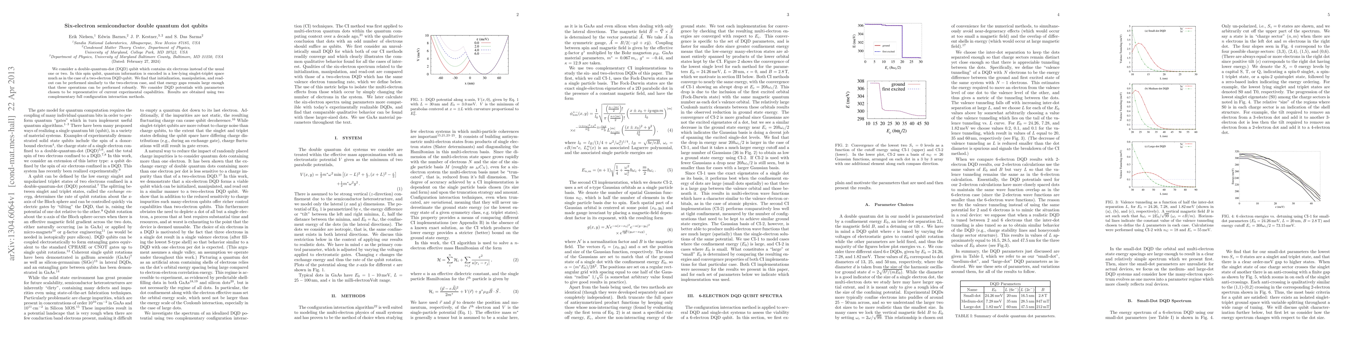 We consider a double-quantum-dot (DQD) qubit which contains six electrons instead of the usual one or two. In this spin qubit, quantum information is encoded in a low-lying singlet-triplet space much as in the case of a two-electron DQD qubit. We find that initialization, manipulation, and read- out can be performed similarly to the two-electron case, and that energy gaps remain large enough that these operations can be performed robustly. We consider DQD potentials with parameters chosen to be representative of current experimental capabilities. Results are obtained using two complementary full configuration interaction methods.