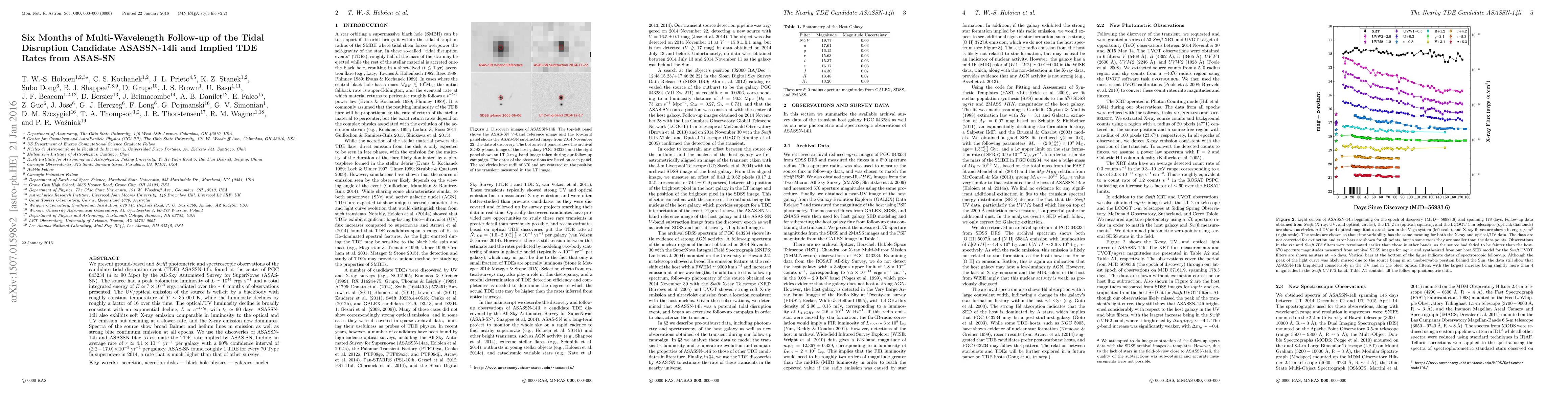 This paper details a six-month multi-wavelength study of the tidal disruption event candidate ASASSN-14li, revealing a peak luminosity of $10^{44}$ ergs s$^{-1}$ and a total radiated energy of $7\times10^{50}$ ergs. The study estimates a TDE rate of $4.1 \times 10^{-5}~{\rm yr}^{-1}$ per galaxy, significantly higher than other surveys.