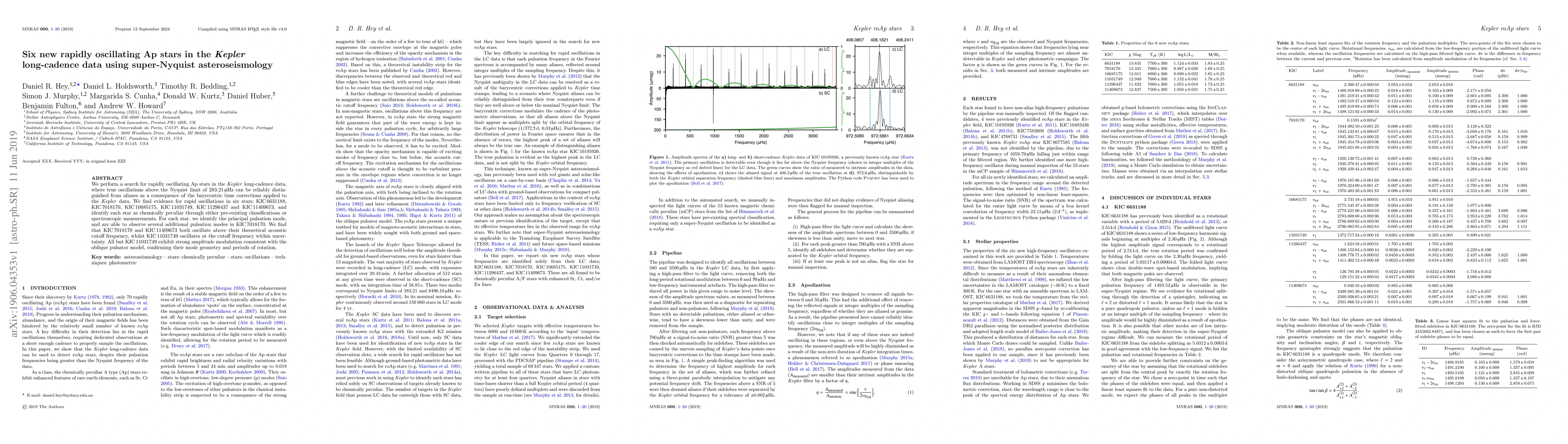 This paper identifies six new rapidly oscillating Ap stars in Kepler long-cadence data using super-Nyquist asteroseismology, revealing pulsation modes above the Nyquist limit. The stars exhibit strong amplitude modulation, confirming their oblique pulsator model and mode geometry.