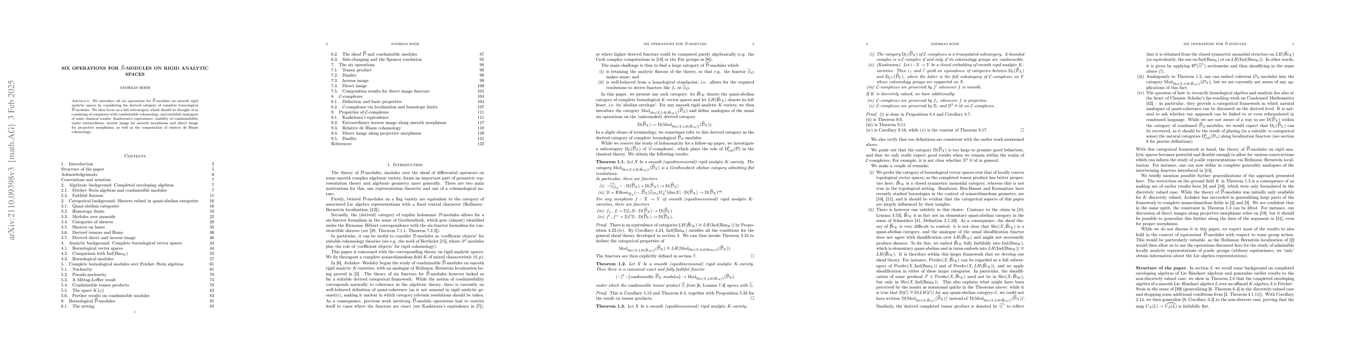 This paper introduces six operations for D-cap-modules on smooth rigid analytic spaces within the derived category, focusing on complexes with coadmissible cohomology. It establishes analogues of classical results including Kashiwara's equivalence and stability properties for coadmissibility.