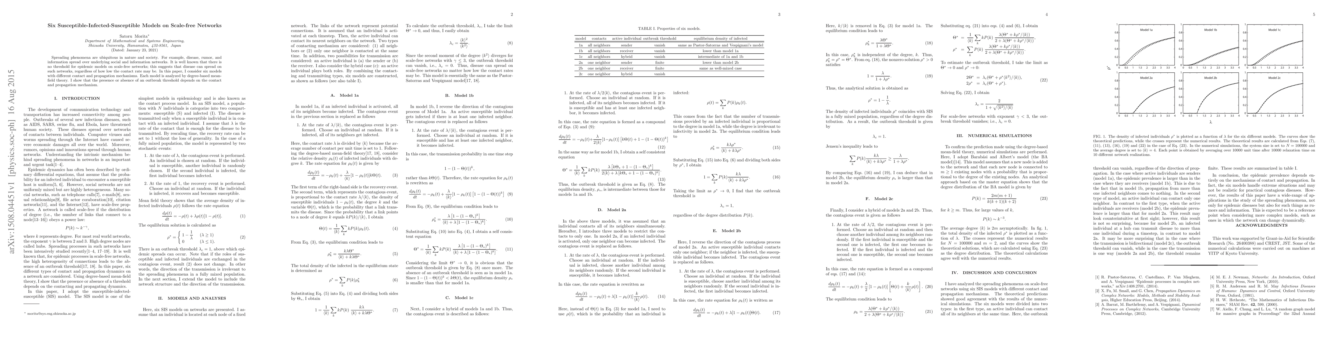 Spreading phenomena are ubiquitous in nature and society. For example, disease, rumor, and information spread over underlying social and information networks. It is well known that there is no threshold for epidemic models on scale-free networks; this suggests that disease can spread on such networks, regardless of how low the contact rate may be. In this paper, I consider six models with different contact and propagation mechanisms. Each model is analyzed by degree-based mean-field theory. I show that the presence or absence of an outbreak threshold depends on the contact and propagation mechanism.