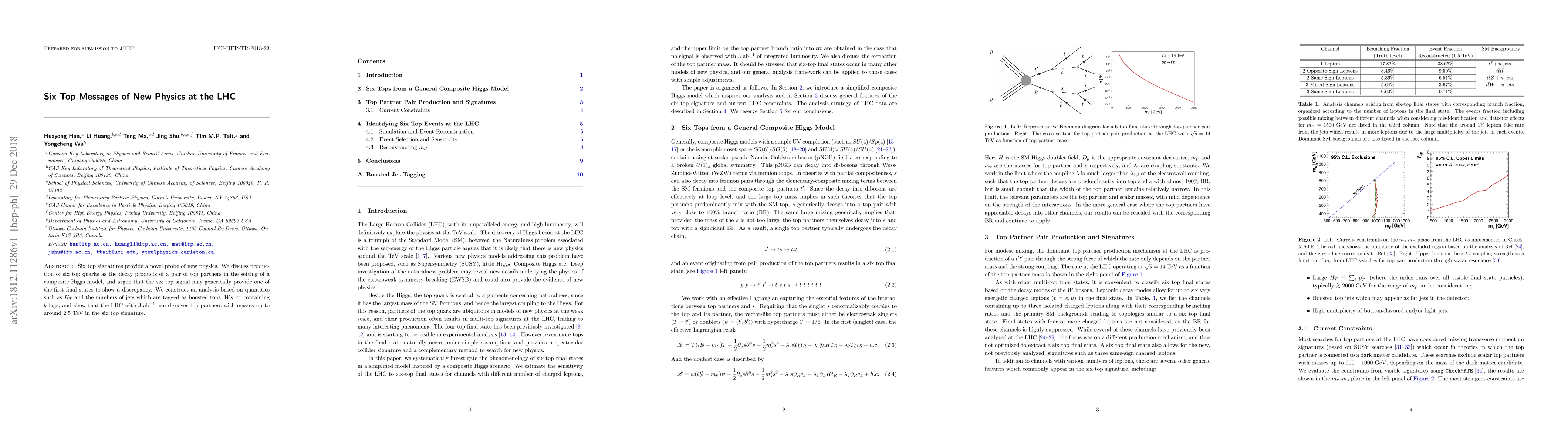 This paper explores the potential of six top quarks as a signature of new physics in the context of a composite Higgs model, suggesting that this signal could reveal discrepancies early. The study proposes an analysis using $H_T$ and jet tagging to detect top partners at the LHC, predicting the capability to discover such partners up to 2.5 TeV with 3 ab$^{-1}$ of data.