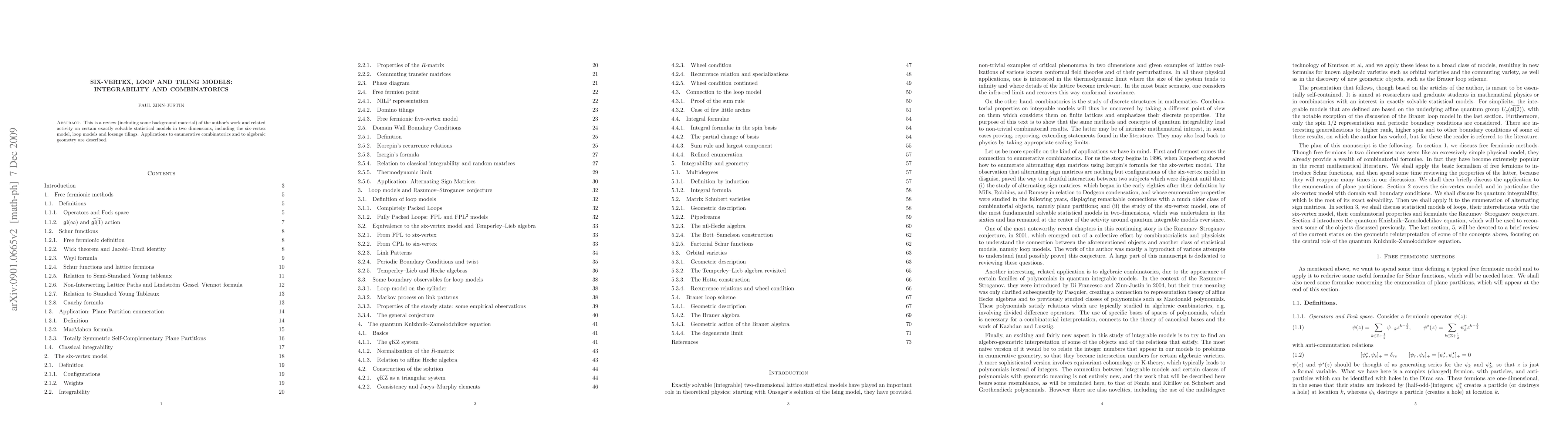 This paper reviews the author's work and related studies on exactly solvable statistical models in two dimensions, such as the six-vertex model, loop models, and lozenge tilings. It explores their integrability and applications to enumerative combinatorics and algebraic geometry.