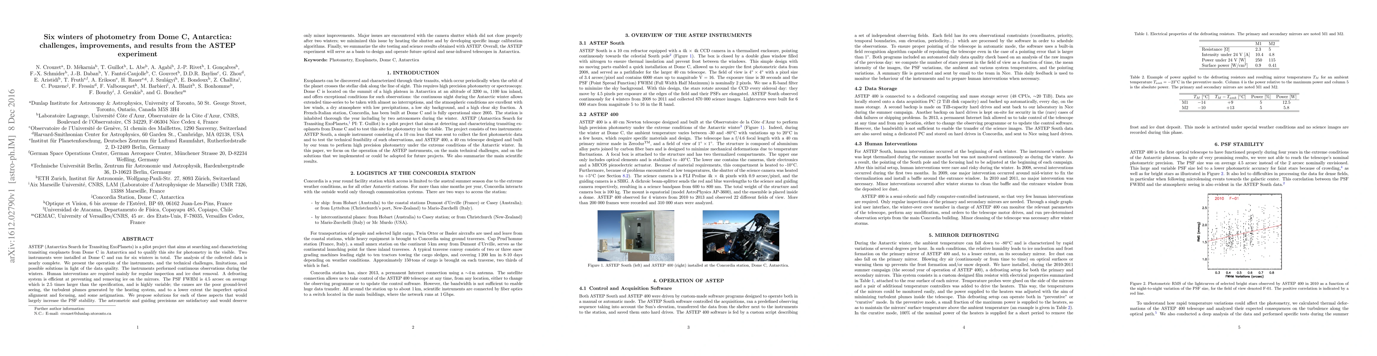 The ASTEP experiment at Dome C, Antarctica, conducted six winters of photometry to search for transiting exoplanets, facing technical challenges like poor seeing and shutter malfunctions. Solutions proposed include improved optical alignment and specific calibration algorithms, while the site's performance will guide future telescope designs in the region.