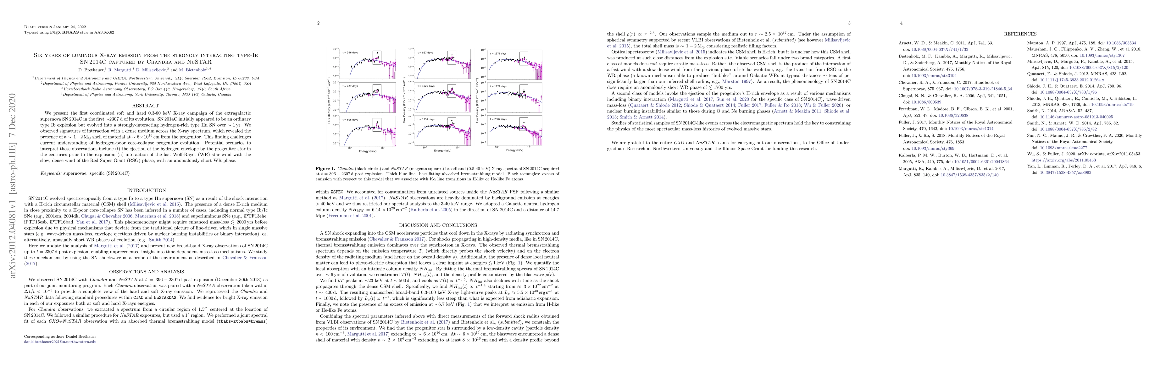 We present the first coordinated soft and hard 0.3-80 keV X-ray campaign of the extragalactic supernova SN 2014C in the first $\sim$2307 d of its evolution. SN 2014C initially appeared to be an ordinary type Ib explosion but evolved into a strongly-interacting hydrogen-rich type IIn SN over $\sim1 \rm{yr}$. We observed signatures of interaction with a dense medium across the X-ray spectrum, which revealed the presence of a $\sim 1-2 \rm{M}_{\odot}$ shell of material at $\sim6\times10^{16} \rm{cm}$ from the progenitor. This finding challenges current understanding of hydrogen-poor core-collapse progenitor evolution. Potential scenarios to interpret these observations include (i) the ejection of the hydrogen envelope by the progenitor star in the centuries prior to the explosion; (ii) interaction of the fast Wolf-Rayet (WR) star wind with the slow, dense wind of the Red Super Giant (RSG) phase, with an anomalously short WR phase.