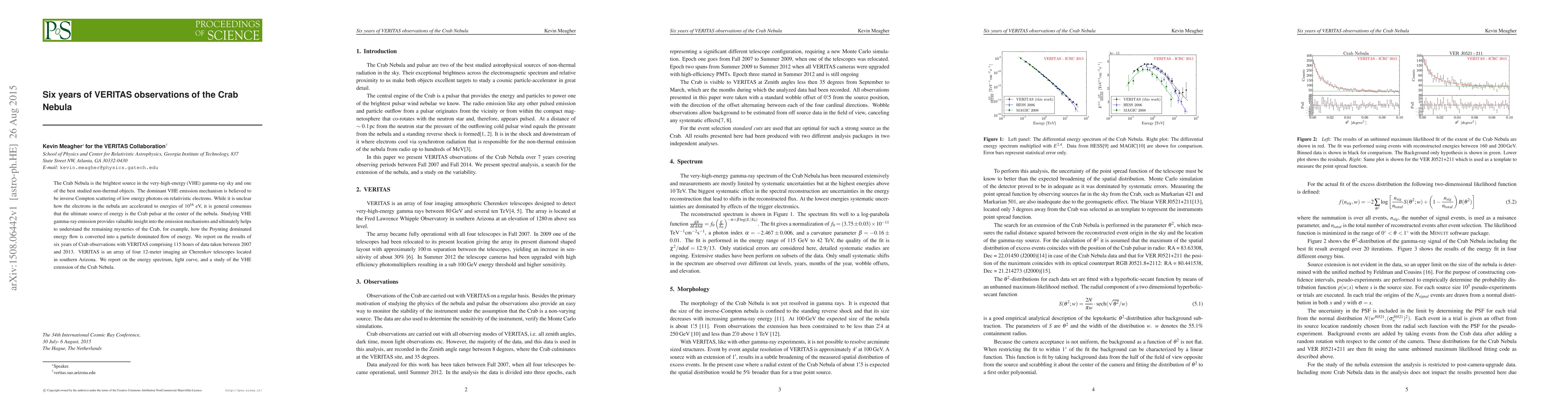 This paper reports on six years of observations of the Crab Nebula using VERITAS, detailing the energy spectrum, light curve, and VHE extension, providing insights into the nebula's non-thermal emission mechanisms and the energy conversion from the Crab pulsar.