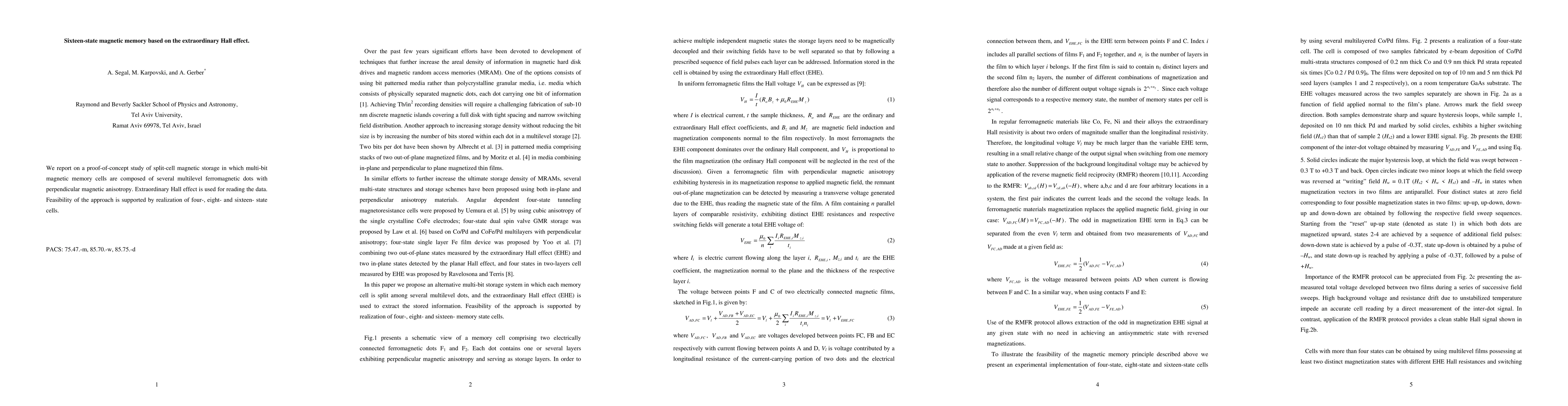 We report on a proof-of-concept study of split-cell magnetic storage in which multi-bit magnetic memory cells are composed of several multilevel ferromagnetic dots with perpendicular magnetic anisotropy. Extraordinary Hall effect is used for reading the data. Feasibility of the approach is supported by realization of four-, eight- and sixteen- state cells.