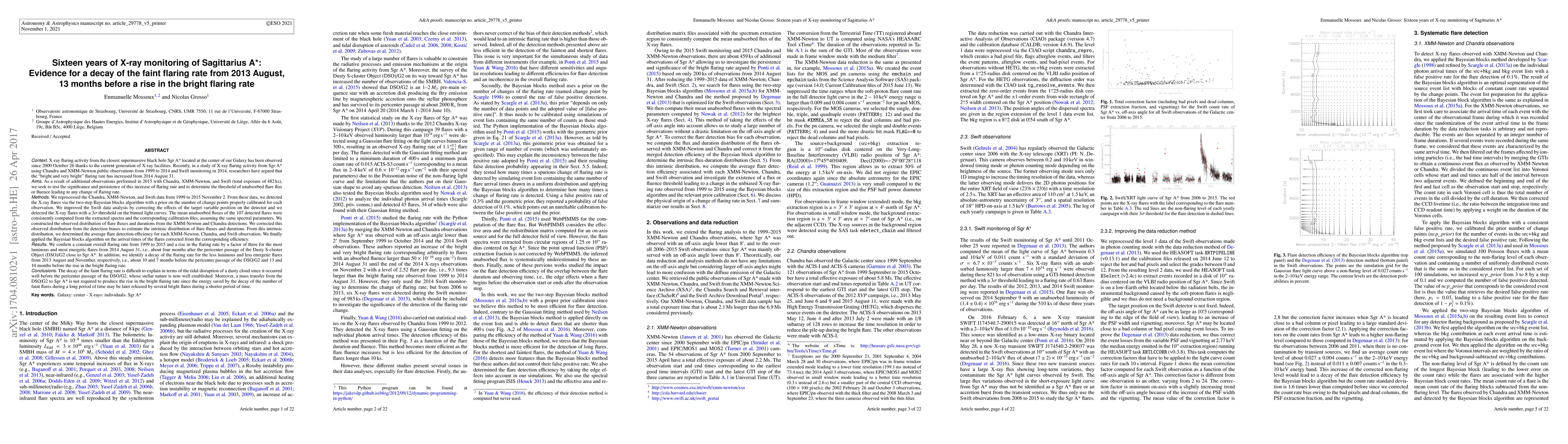 This paper analyzes 16 years of X-ray monitoring of Sagittarius A* (Sgr A*) and finds a decay in the faint flaring rate starting in August 2013, 13 months before a rise in the bright flaring rate in August 2014. The study suggests that the rise in bright flares does not require mass transfer from the nearby DSO/G2 object, as the energy saved by the decrease in faint flares could later fuel the brighter flares.