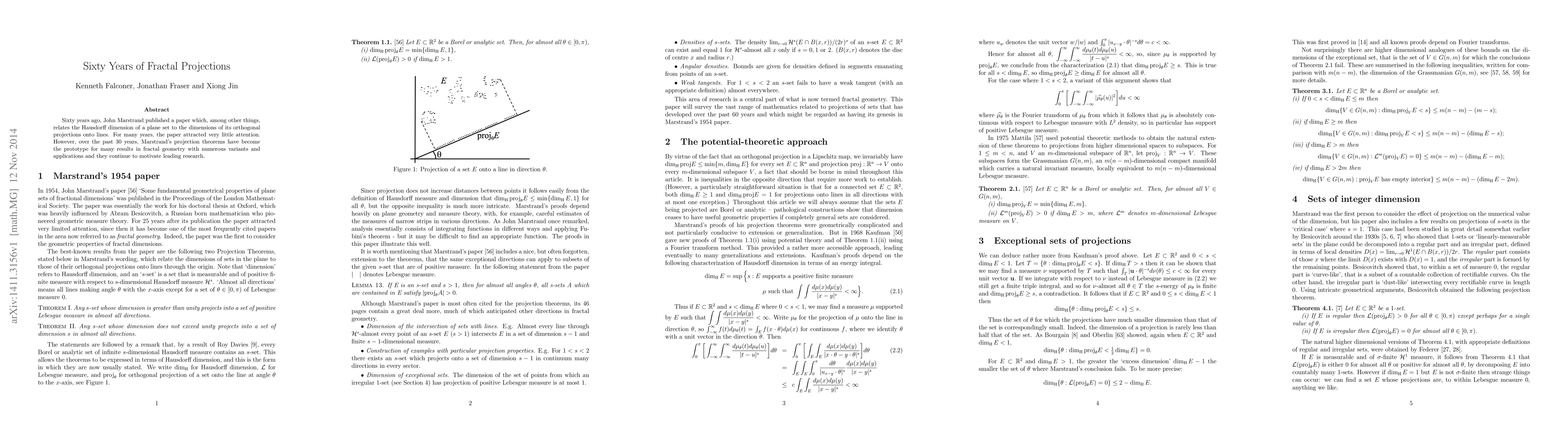 Sixty years ago, John Marstrand published a paper which, among other things, relates the Hausdorff dimension of a plane set to the dimensions of its orthogonal projections onto lines. For many years, the paper attracted very little attention. However, over the past 30 years, Marstrand's projection theorems have become the prototype for many results in fractal geometry with numerous variants and applications and they continue to motivate leading research.