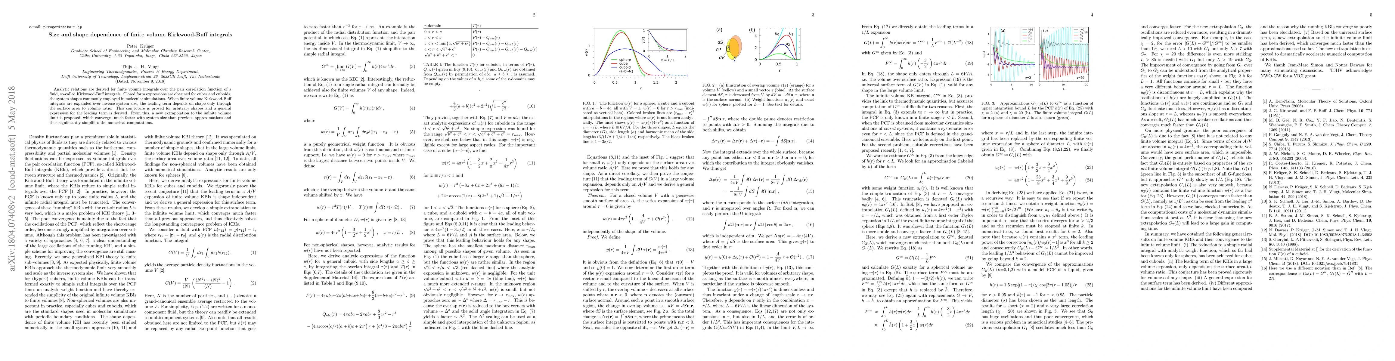 Researchers derived analytic relations for finite volume Kirkwood-Buff integrals, showing that for certain shapes, the leading term depends only on surface area to volume ratio, simplifying molecular simulation computations.
