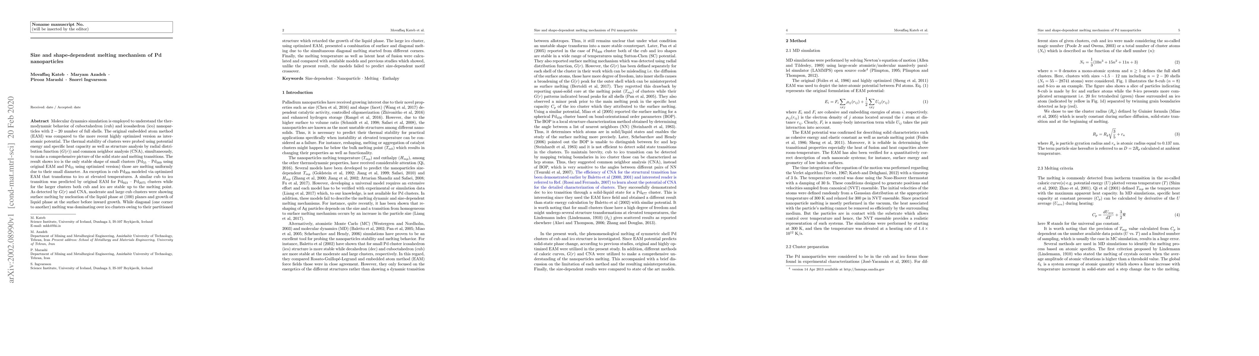 This research uses molecular dynamics simulations to explore the melting mechanisms of Pd nanoparticles of different shapes and sizes. It reveals that small icosahedron clusters melt uniformly, while larger cuboctahedron clusters exhibit surface melting, transitioning to icosahedron shapes at elevated temperatures. The study highlights the size-dependent melting behavior and the failure of existing models to predict the observed motif crossover.