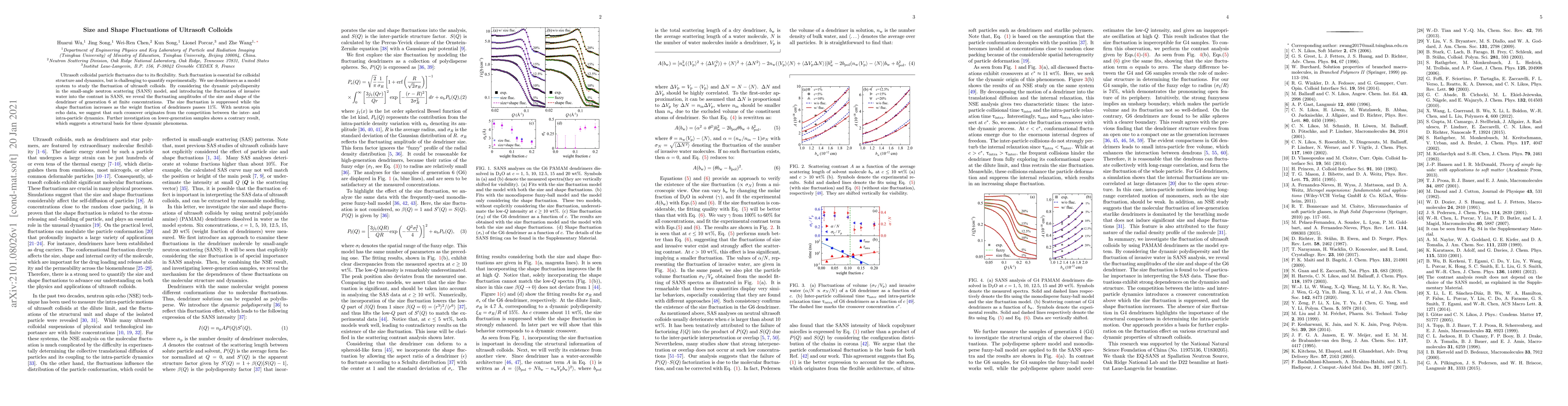 Ultrasoft colloidal particle fluctuates due to its flexibility. Such fluctuation is essential for colloidal structure and dynamics, but is challenging to quantify experimentally. We use dendrimers as a model system to study the fluctuation of ultrasoft colloids. By considering the dynamic polydispersity in the small-angle neutron scattering (SANS) model, and introducing the fluctuation of invasive water into the contrast in SANS, we reveal the fluctuating amplitudes of the size and shape of the dendrimer of generation 6 at finite concentrations. The size fluctuation is suppressed while the shape fluctuation increases as the weight fraction of dendrimers passes 11%. With neutron spin echo data, we suggest that such crossover originates from the competition between the inter- and intra-particle dynamics. Further investigation on lower-generation samples shows a contrary result, which suggests a structural basis for these dynamic phenomena.