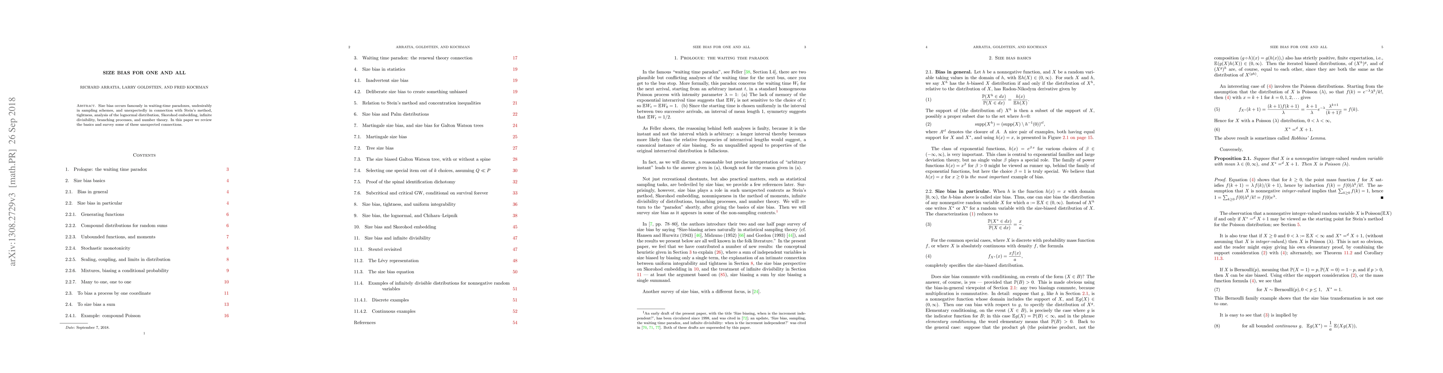 Size bias occurs famously in waiting-time paradoxes, undesirably in sampling schemes, and unexpectedly in connection with Stein's method, tightness, analysis of the lognormal distribution, Skorohod embedding, infinite divisibility, and number theory. In this paper we review the basics and survey some of these unexpected connections.