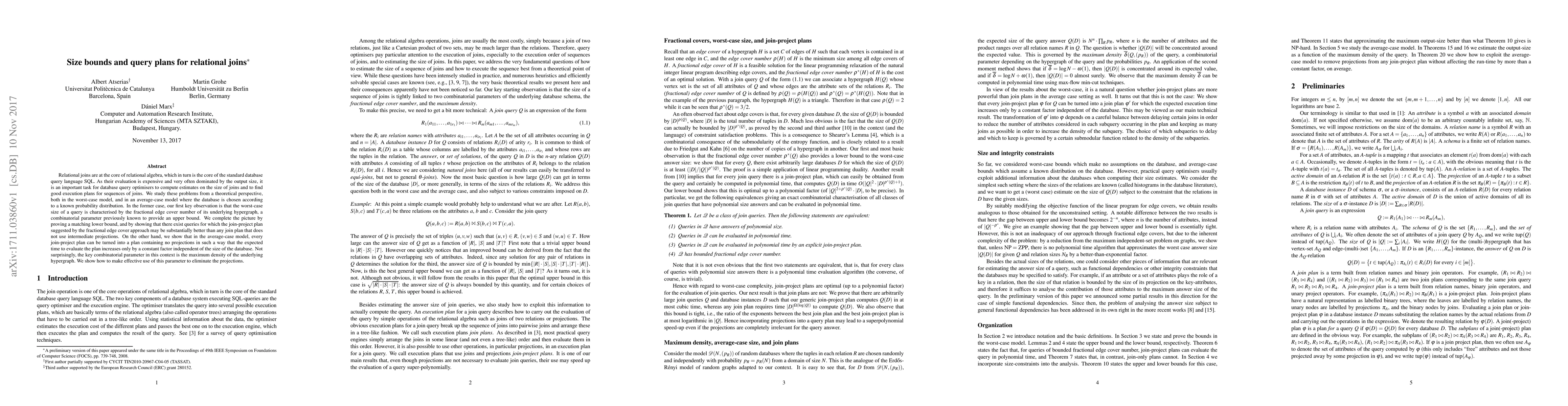 This research paper investigates relational joins in databases, providing bounds for join size and query plans, with implications for efficient database optimization.