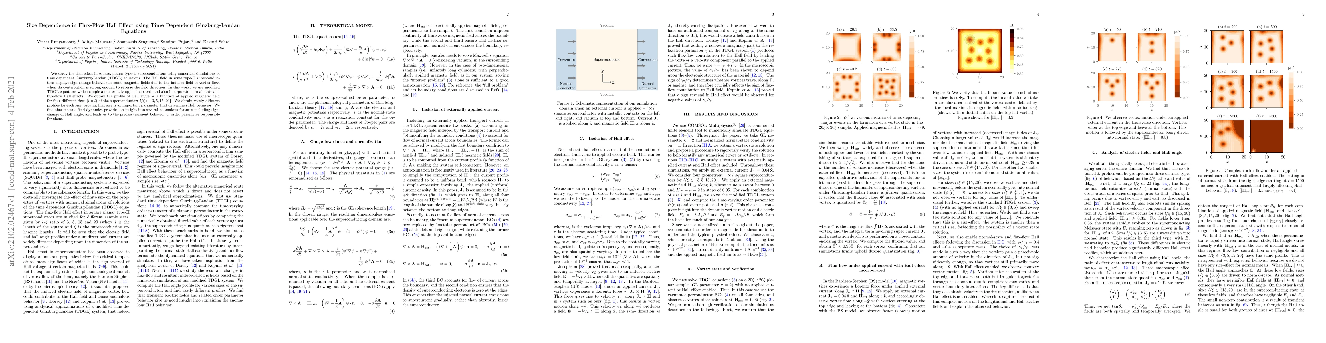 This paper investigates the Hall effect in type-II superconductors through numerical simulations of modified time-dependent Ginzburg-Landau equations, revealing that the Hall angle's profile and sign-change behavior are strongly size-dependent in square planar samples. The study highlights the importance of sample size in determining anomalous features and transient order parameter dynamics.