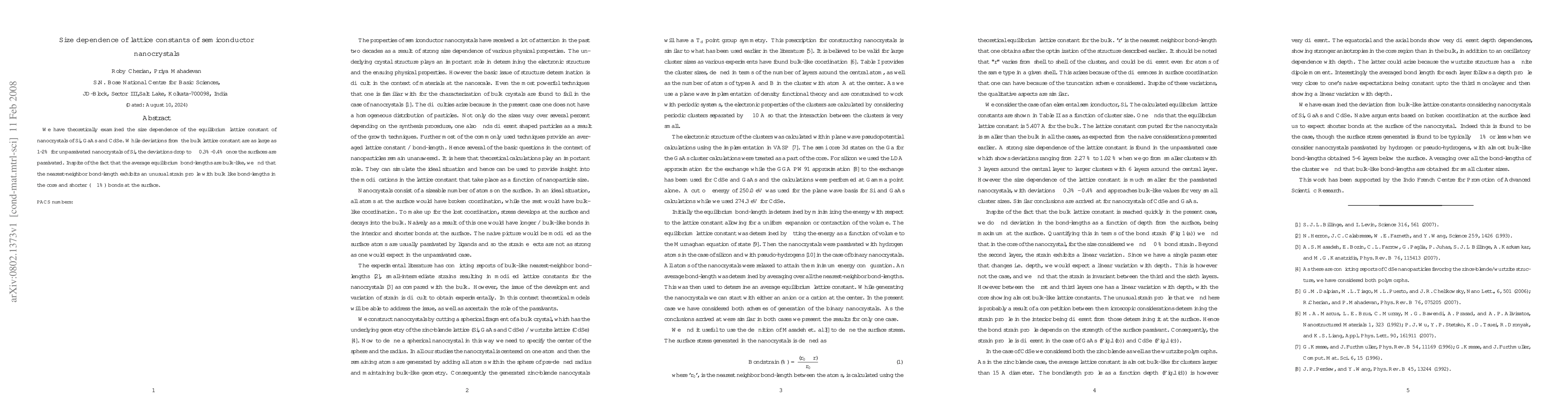 This paper investigates the size-dependent lattice constants of semiconductor nanocrystals (Si, GaAs, and CdSe), revealing that unpassivated Si nanocrystals show significant deviations (1-2%) from bulk lattice constants, which reduce to ~0.3%-0.4% upon surface passivation. The study also finds an unusual strain profile with bulk-like core bond lengths and shorter (~1%) surface bonds.