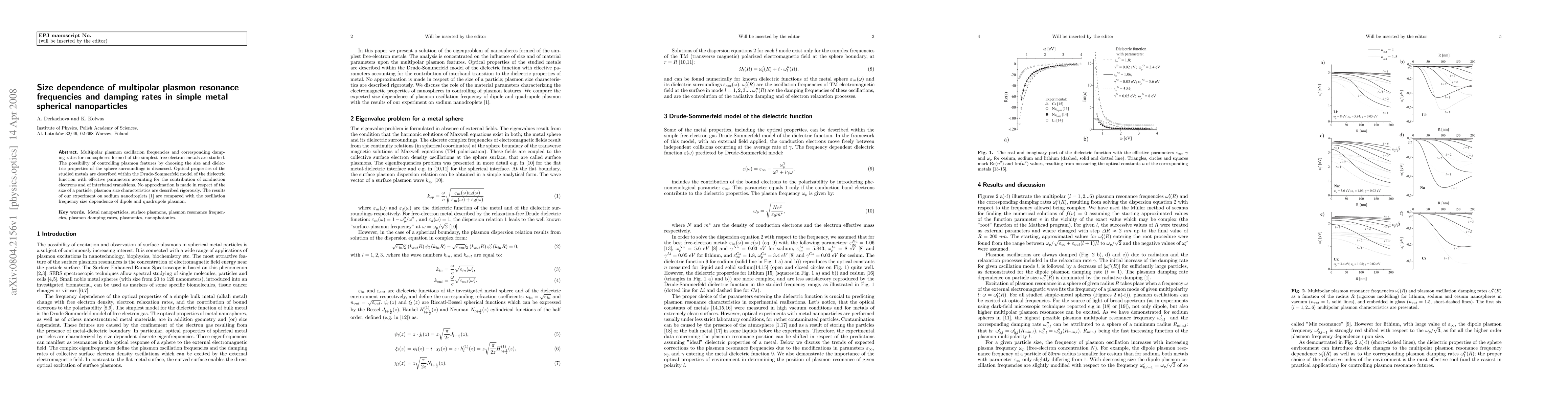 This paper investigates the size-dependent multipolar plasmon resonance frequencies and damping rates in simple metal spherical nanoparticles, employing the Drude-Sommerfeld model. It discusses the potential to manipulate these properties through nanoparticle size and surrounding dielectric environments, and compares experimental results on sodium nanodroplets with theoretical predictions.