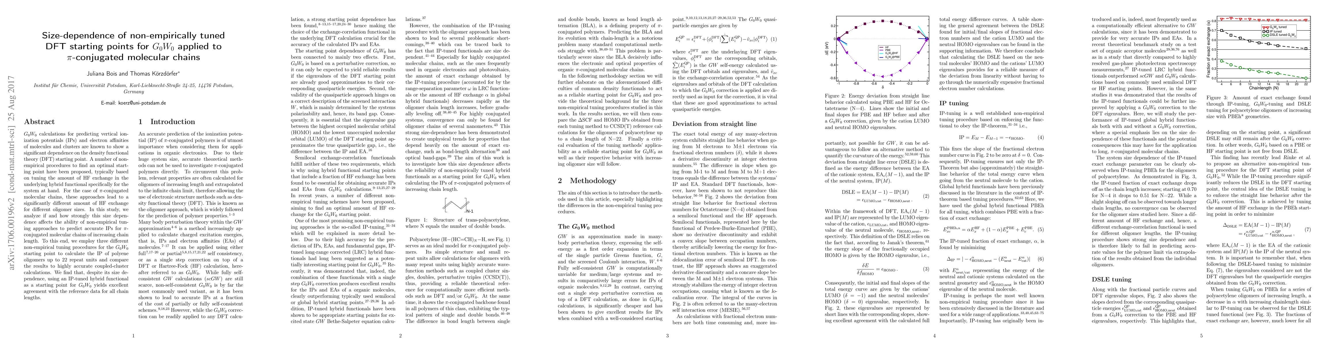 $G_0W_0$ calculations for predicting vertical ionization potentials (IPs) and electron affinities of molecules and clusters are known to show a significant dependence on the density functional theory (DFT) starting point. A number of non-empirical procedures to find an optimal starting point have been proposed, typically based on tuning the amount of HF exchange in the underlying hybrid functional specifically for the system at hand. For the case of $\pi$-conjugated molecular chains, these approaches lead to a significantly different amount of HF exchange for different oligomer sizes. In this study, we analyze if and how strongly this size dependence affects the ability of non-empirical tuning approaches to predict accurate IPs for $\pi$-conjugated molecular chains of increasing chain length. To this end, we employ three different non-empirical tuning procedures for the $G_0W_0$ starting point to calculate the IP of polyene oligomers up to 22 repeat units and compare the results to highly accurate coupled-cluster calculations. We find that, despite its size dependence, using an IP-tuned hybrid functional as a starting point for $G_0W_0$ yields excellent agreement with the reference data for all chain lengths.