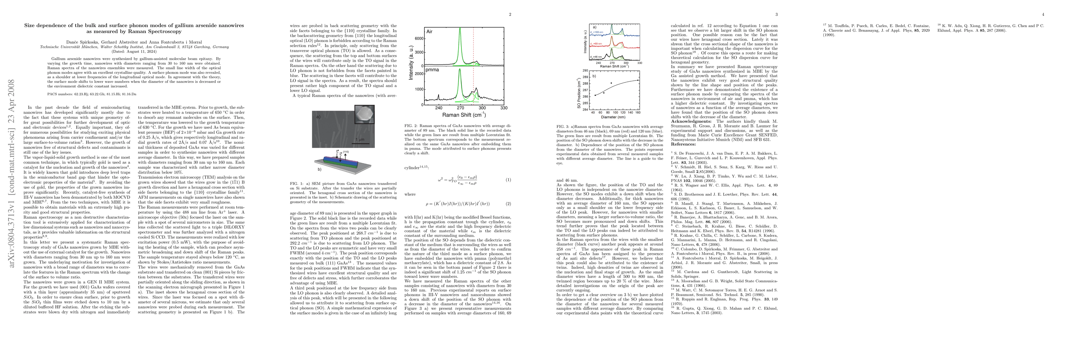 Researchers discovered a surface phonon mode in gallium arsenide nanowires with varying diameters, as measured by Raman spectroscopy, which shifted to lower wave numbers when the diameter decreased or environment diedlectric constant increased.