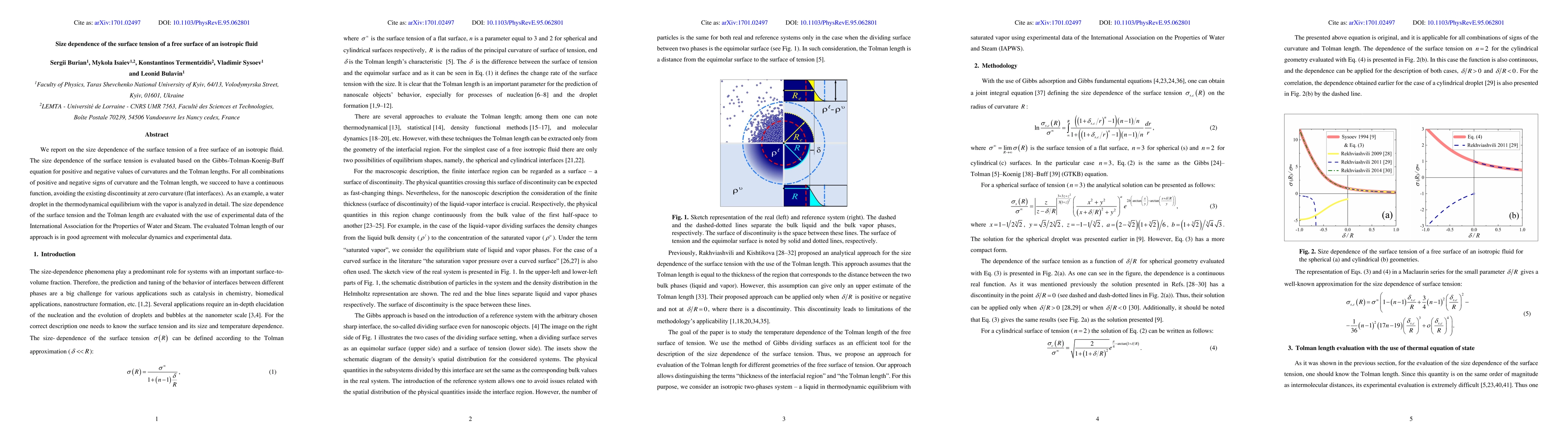 This paper investigates the size-dependent surface tension of isotropic fluids using the Gibbs-Tolman-Koenig-Buff equation, providing a continuous function without discontinuity at zero curvature. It analyzes a water droplet in thermodynamic equilibrium, showing good agreement between evaluated Tolman lengths and experimental data.