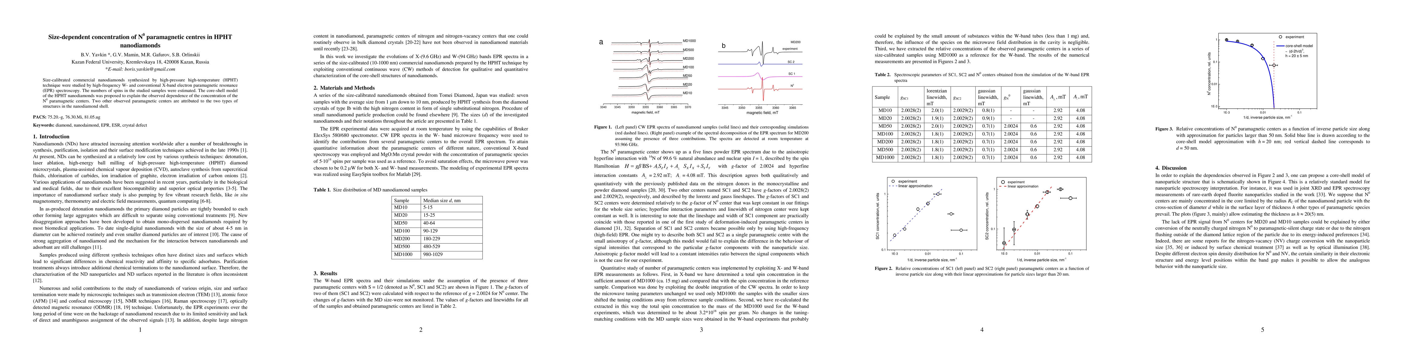 This study investigates size-calibrated nanodiamonds synthesized via HPHT, revealing a size-dependent concentration of N0 paramagnetic centers using EPR spectroscopy. A core-shell model is proposed to explain the observed concentration variations, with additional paramagnetic centers attributed to structural differences in the nanodiamond shell.
