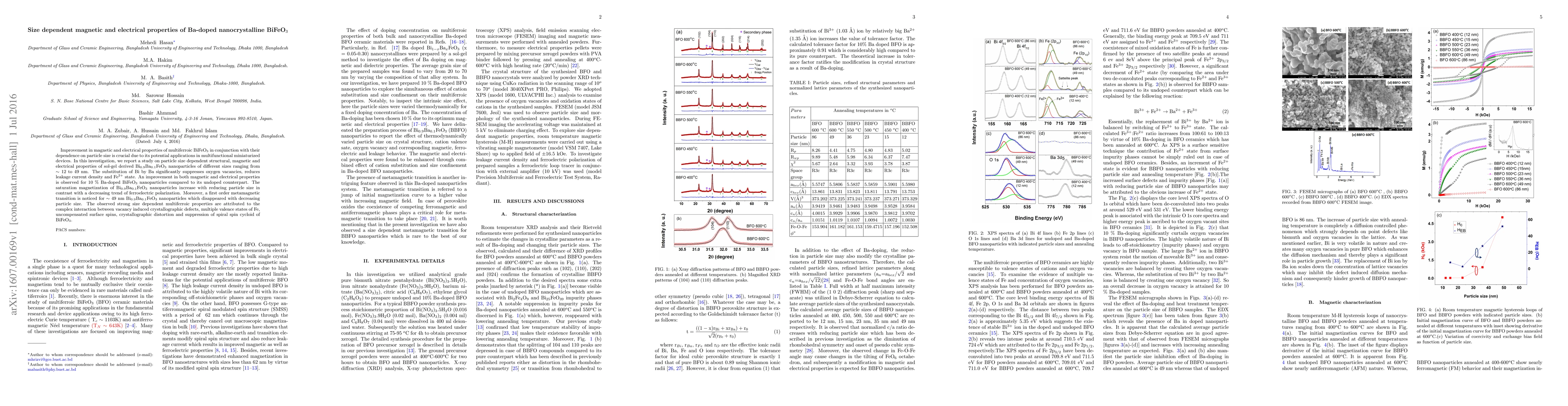 This study investigates how the size of Ba-doped BiFeO$_3$ nanoparticles affects their magnetic and electrical properties, finding that smaller particles show increased saturation magnetization and a first-order metamagnetic transition, while larger particles maintain better ferroelectric polarization. The substitution of Ba reduces defects and leakage current, enhancing overall multiferroic performance.