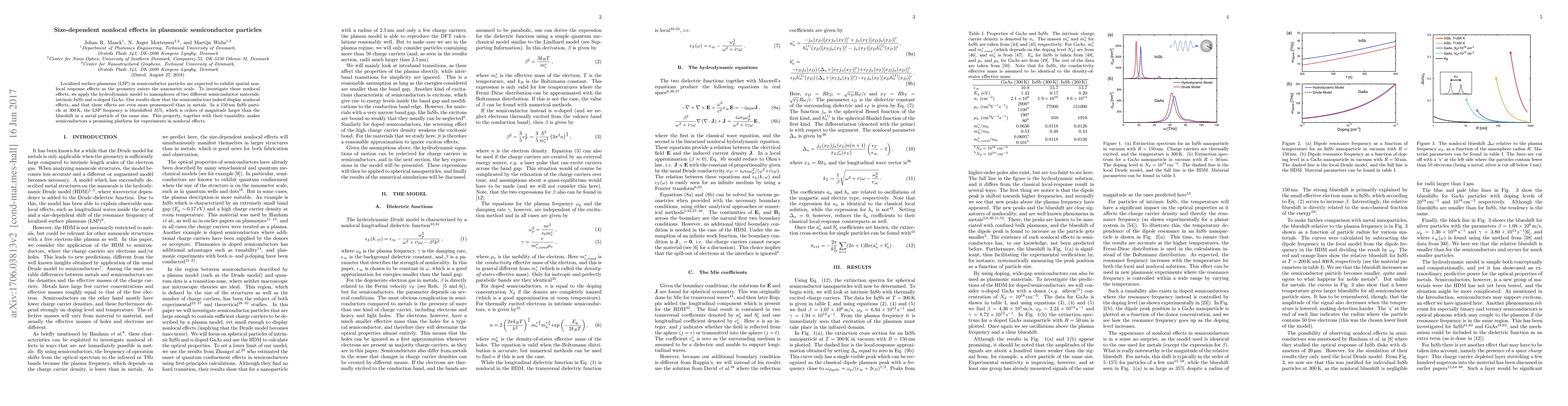 This research investigates nonlocal effects in plasmonic semiconductor particles using the hydrodynamic model. It finds that semiconductors, like InSb and doped GaAs, display more pronounced nonlocal effects than metals, with a significant blueshift in LSP frequency, making them promising for nonlocal effect experiments.