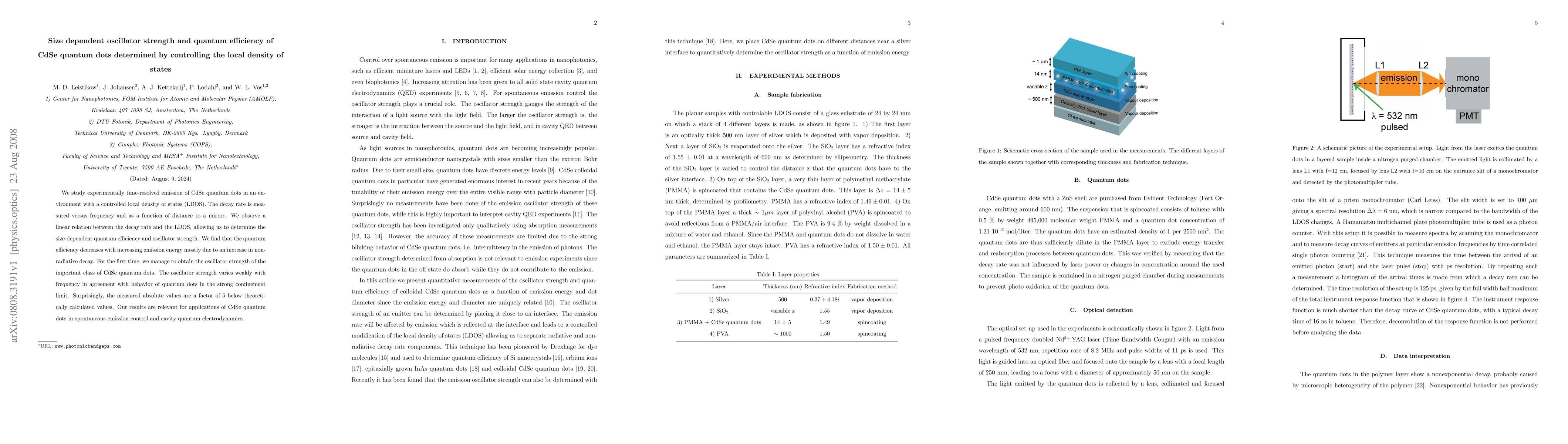 This study experimentally investigates the size-dependent oscillator strength and quantum efficiency of CdSe quantum dots by controlling the local density of states, revealing a decrease in quantum efficiency with higher emission energy due to increased nonradiative decay. The oscillator strength shows weak frequency dependence, but measured values are a factor of 5 below theoretical predictions.